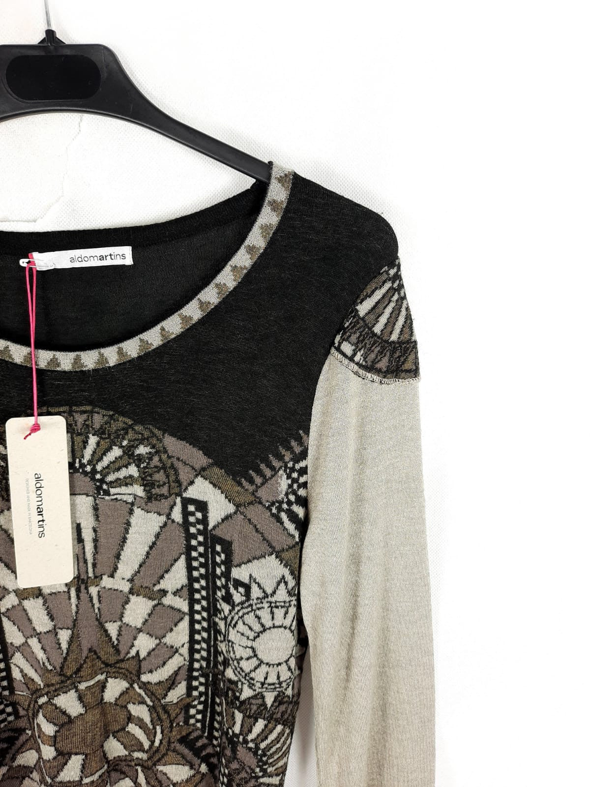 ALDOMARTINS. Jersey estampado negro y beige T.40
