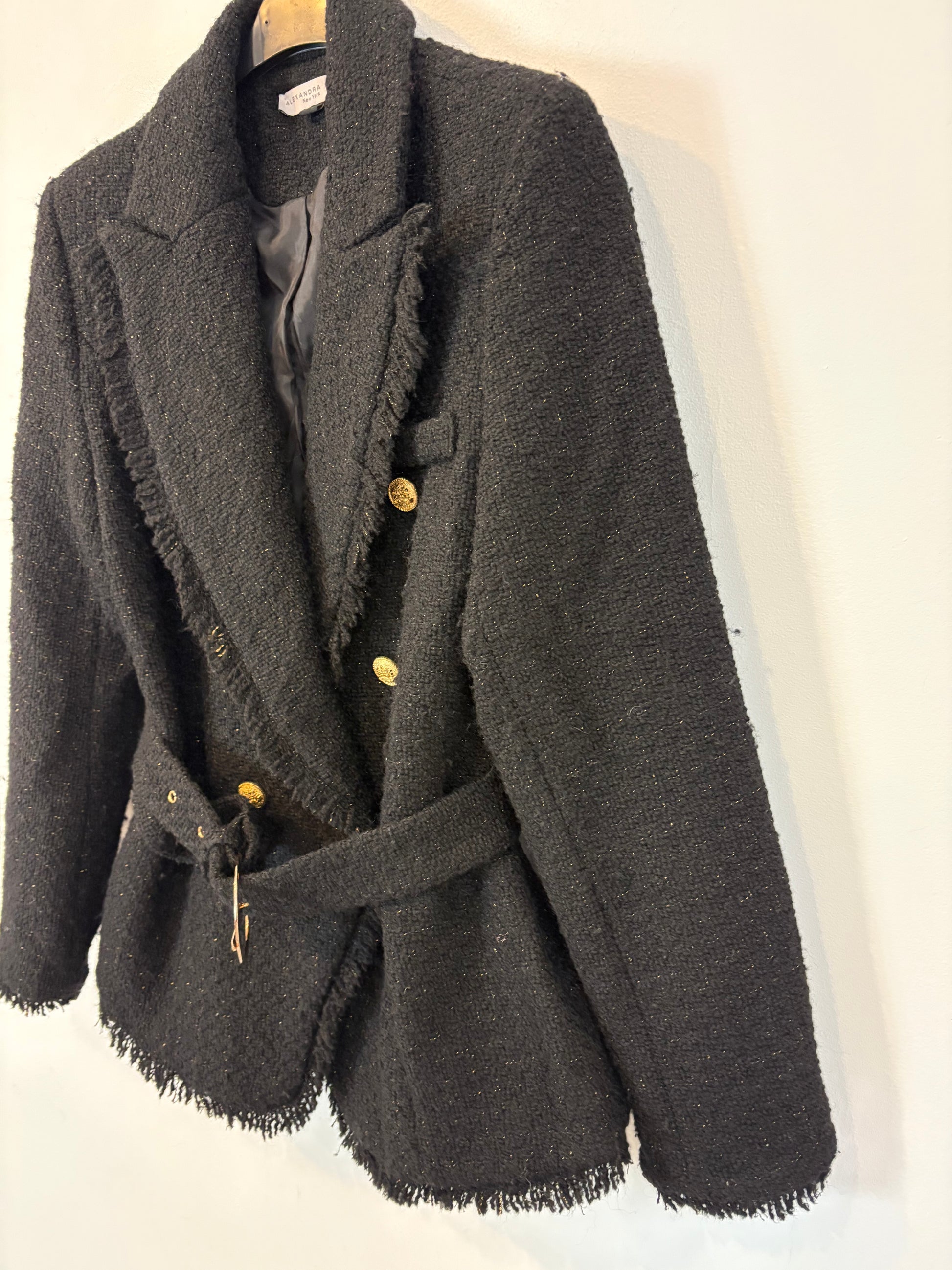 ALEXANDRA NEEL. Chaqueta tweed negra cinturón