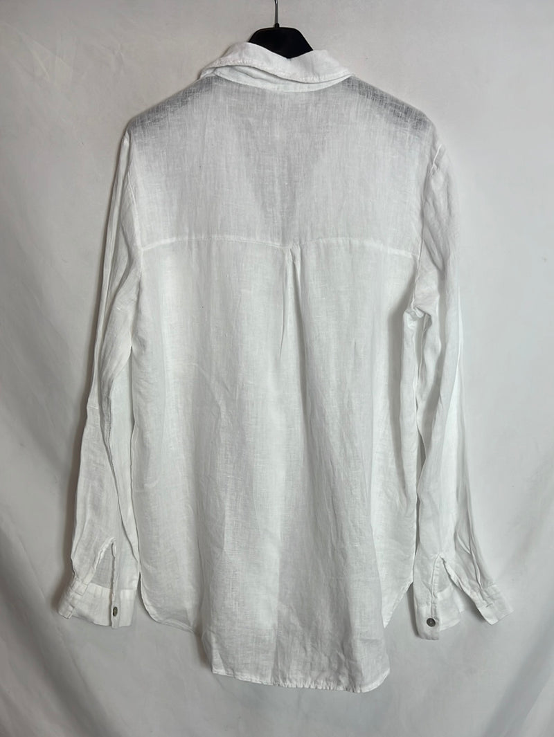 ALGO BONITO. Blusa lino blanco bolsillos. T M