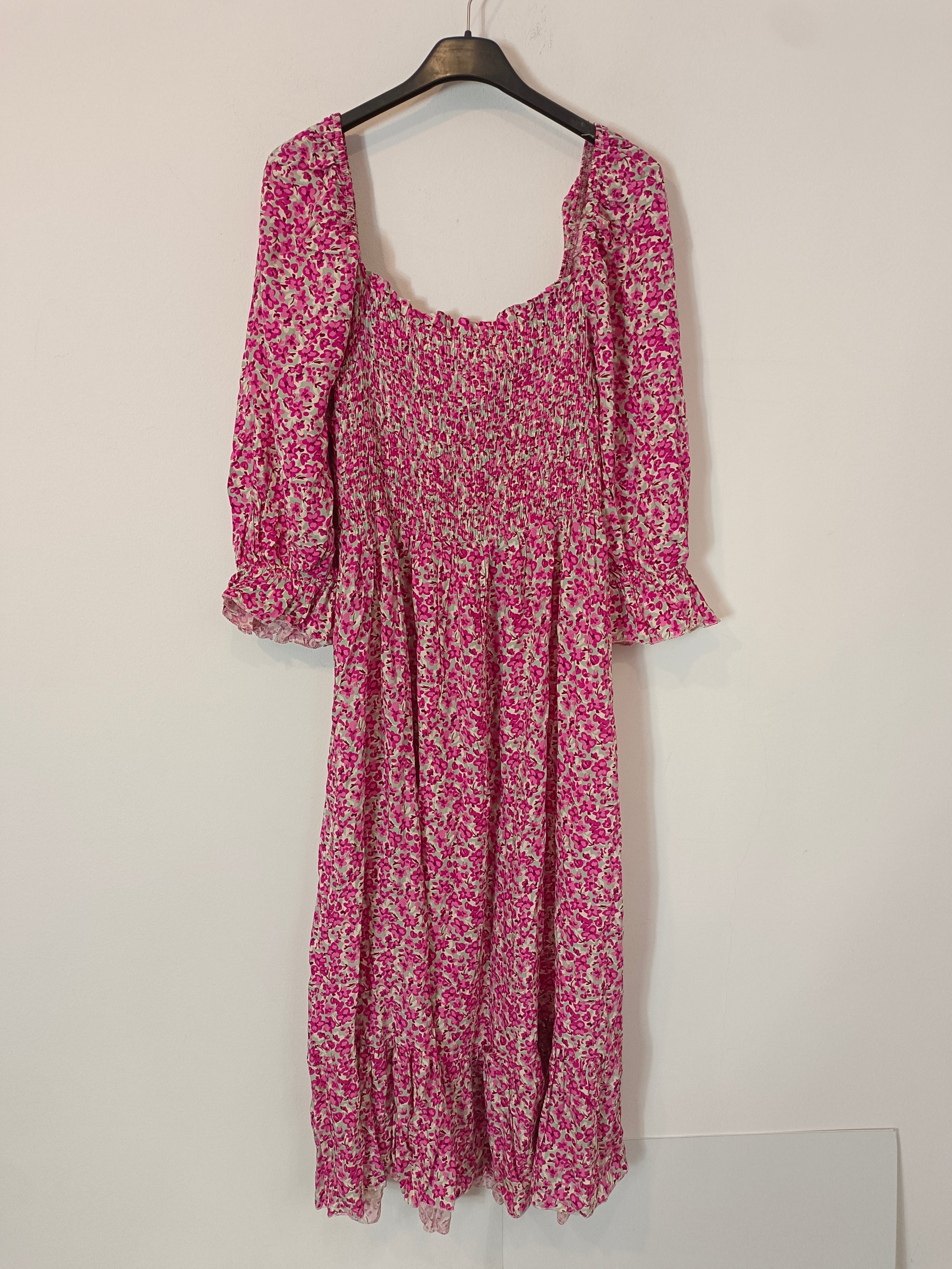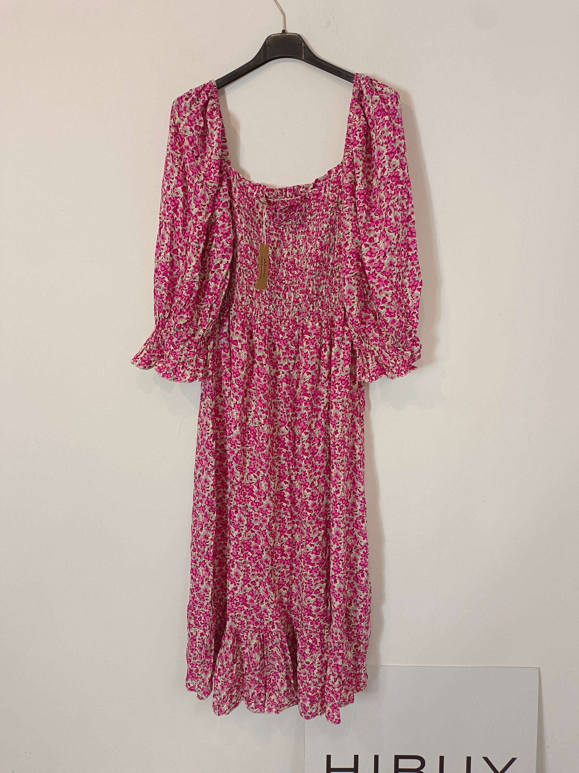 NUEVO CON ETIQUETA. Vestido largo fluido con estampado de flores rosas