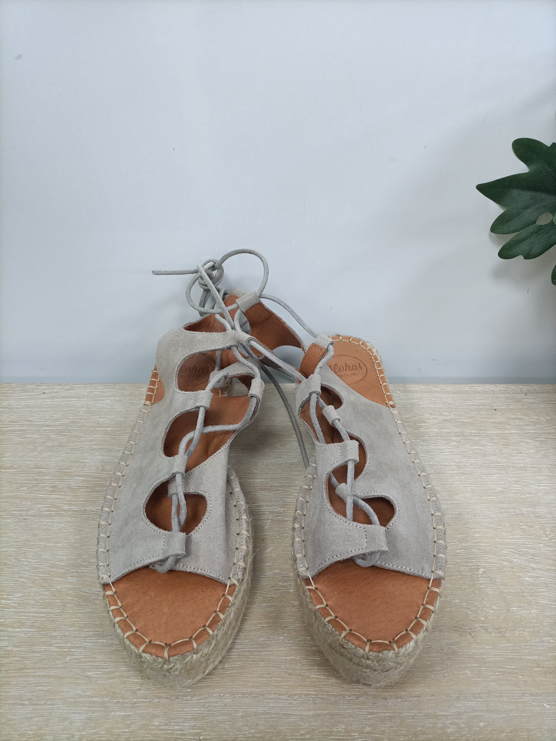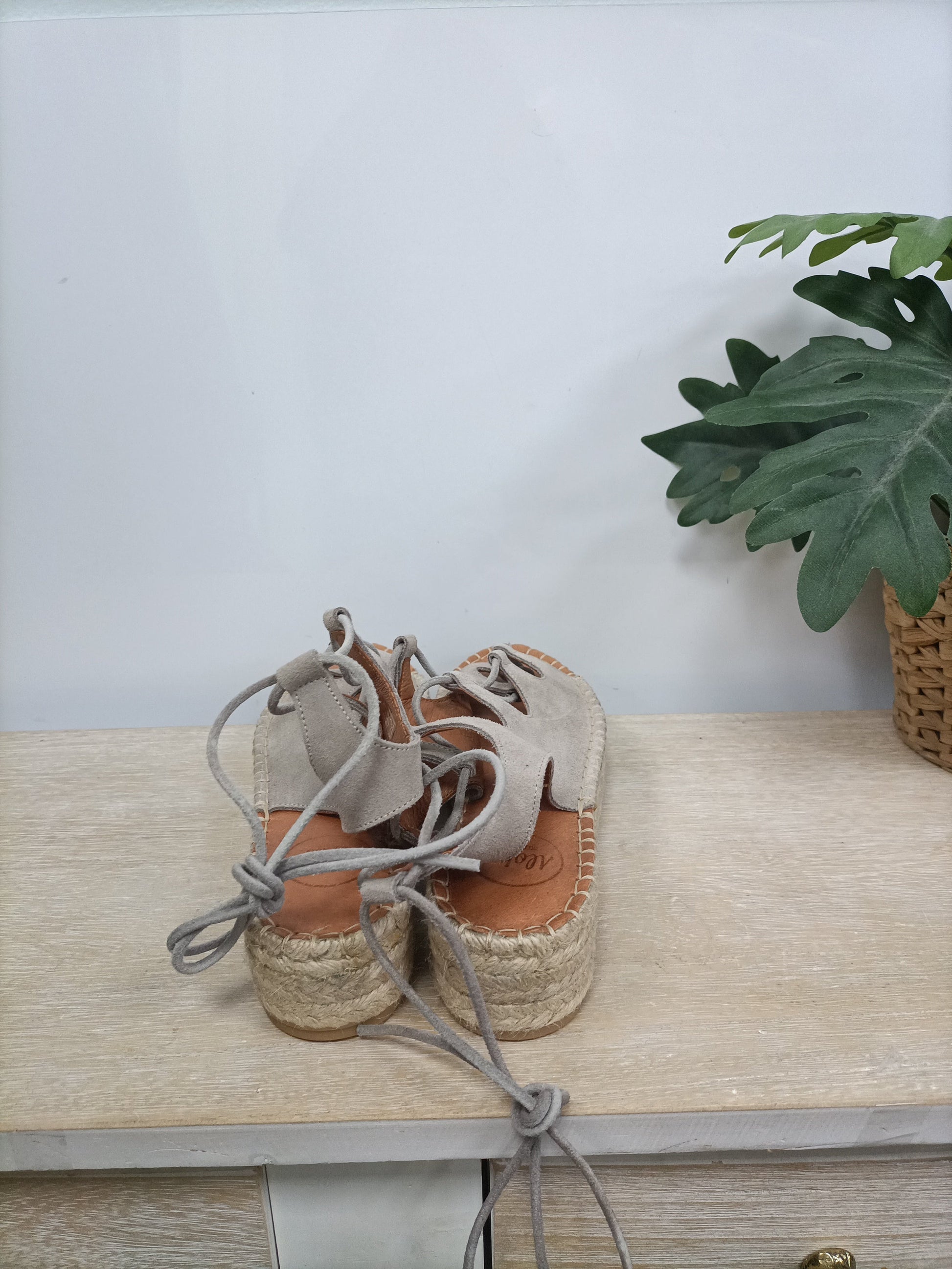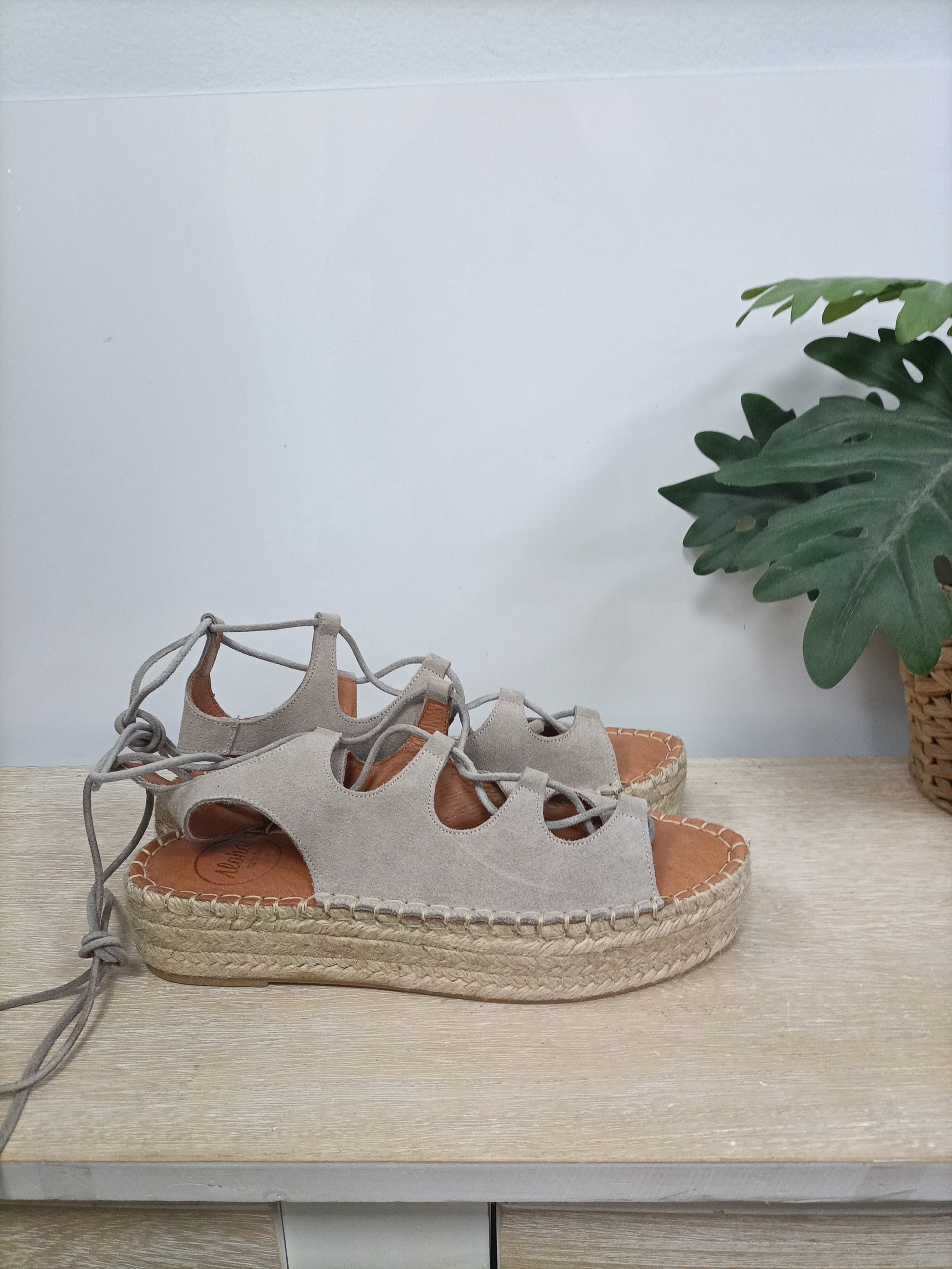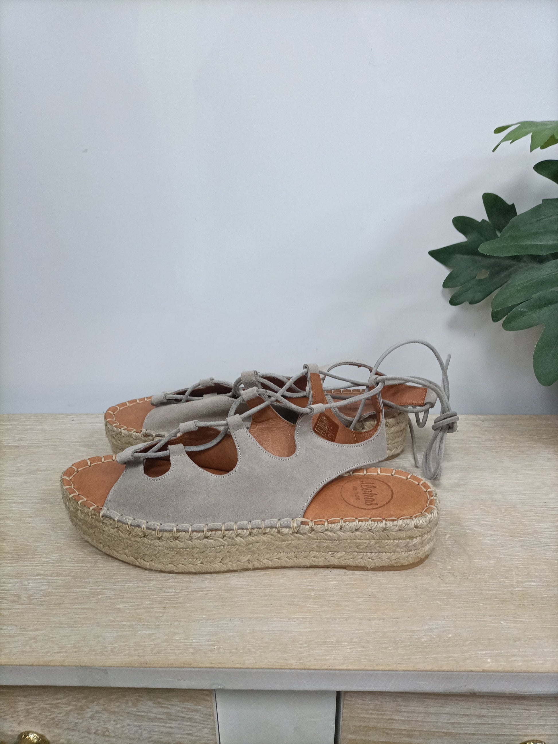 Alohas. 39. Alpargatas gris de piel con cuerdas. Suela ancha. Suela 4 cm