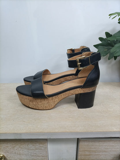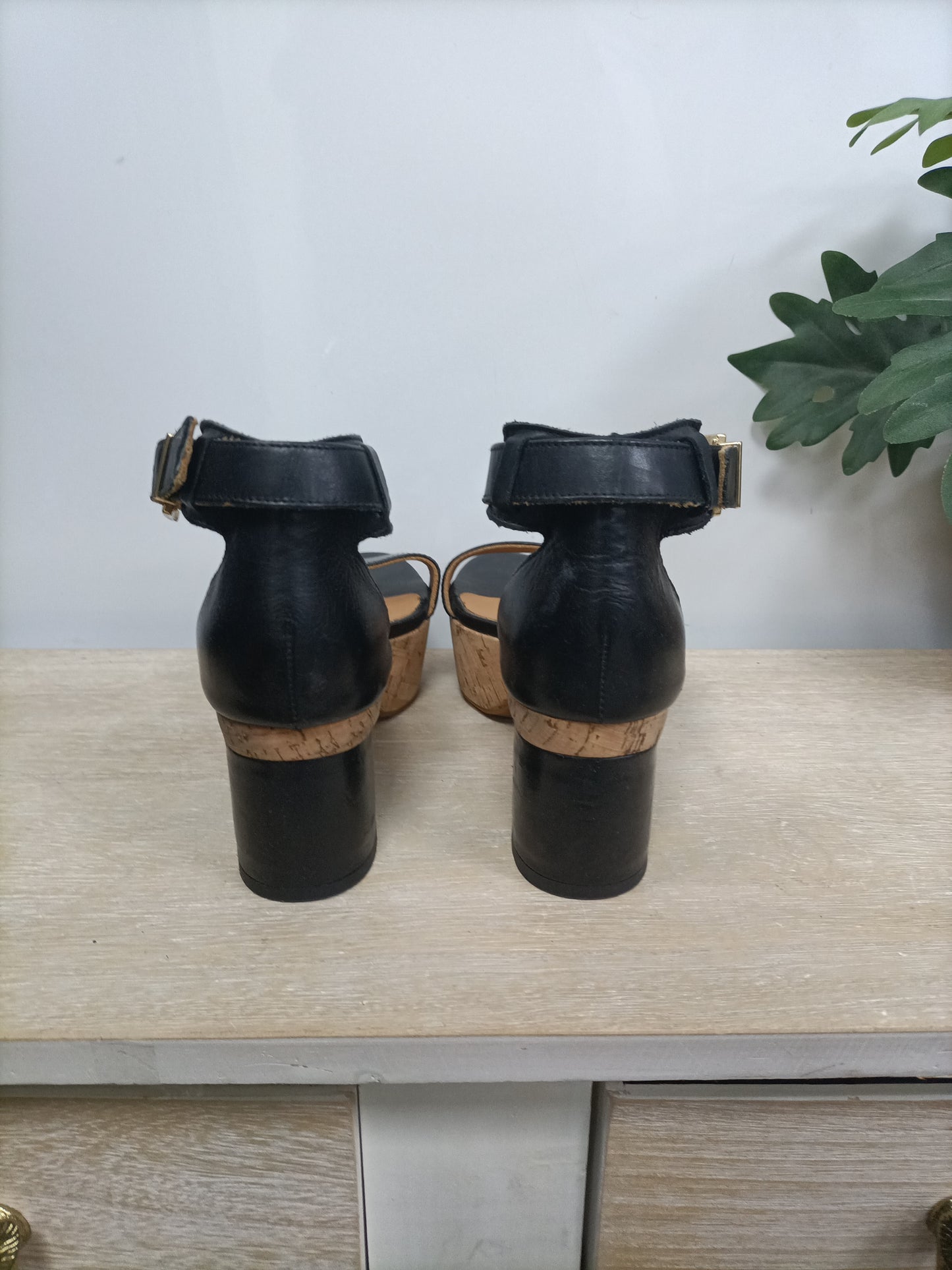 Sandalias negra con plataforma de corcho y tacón cuadrado negro. Tacón 7 cm plataforma 4 cm