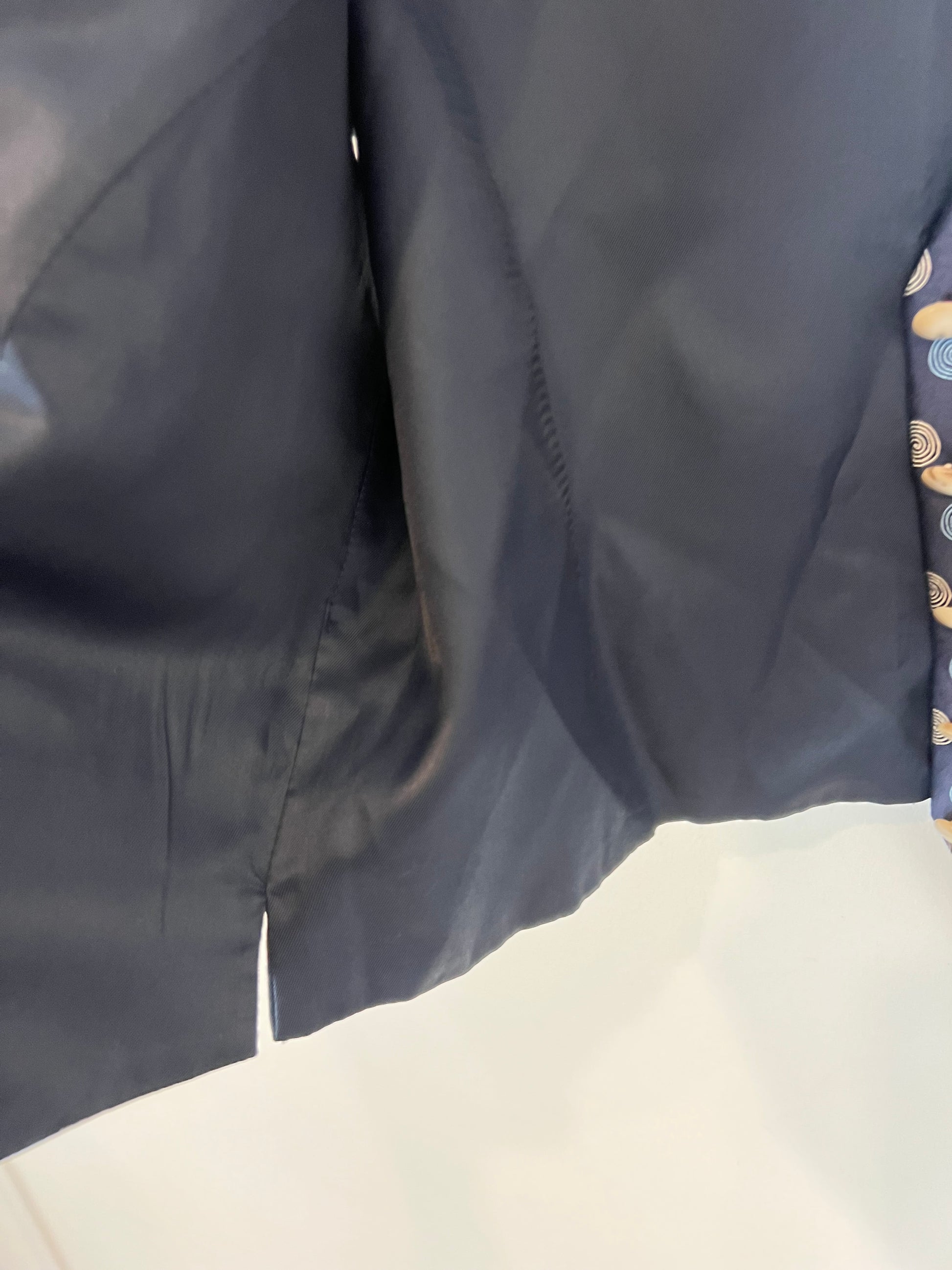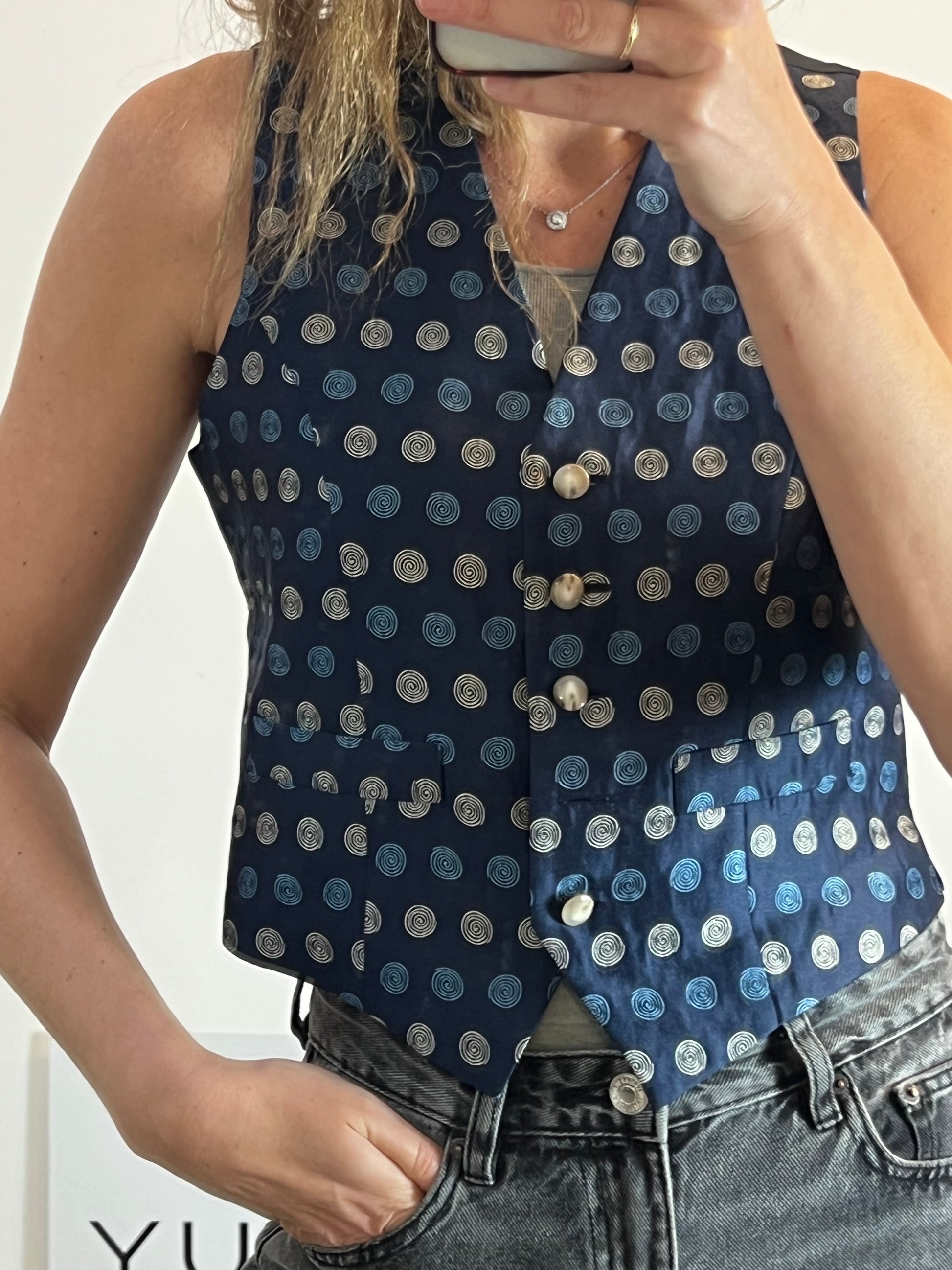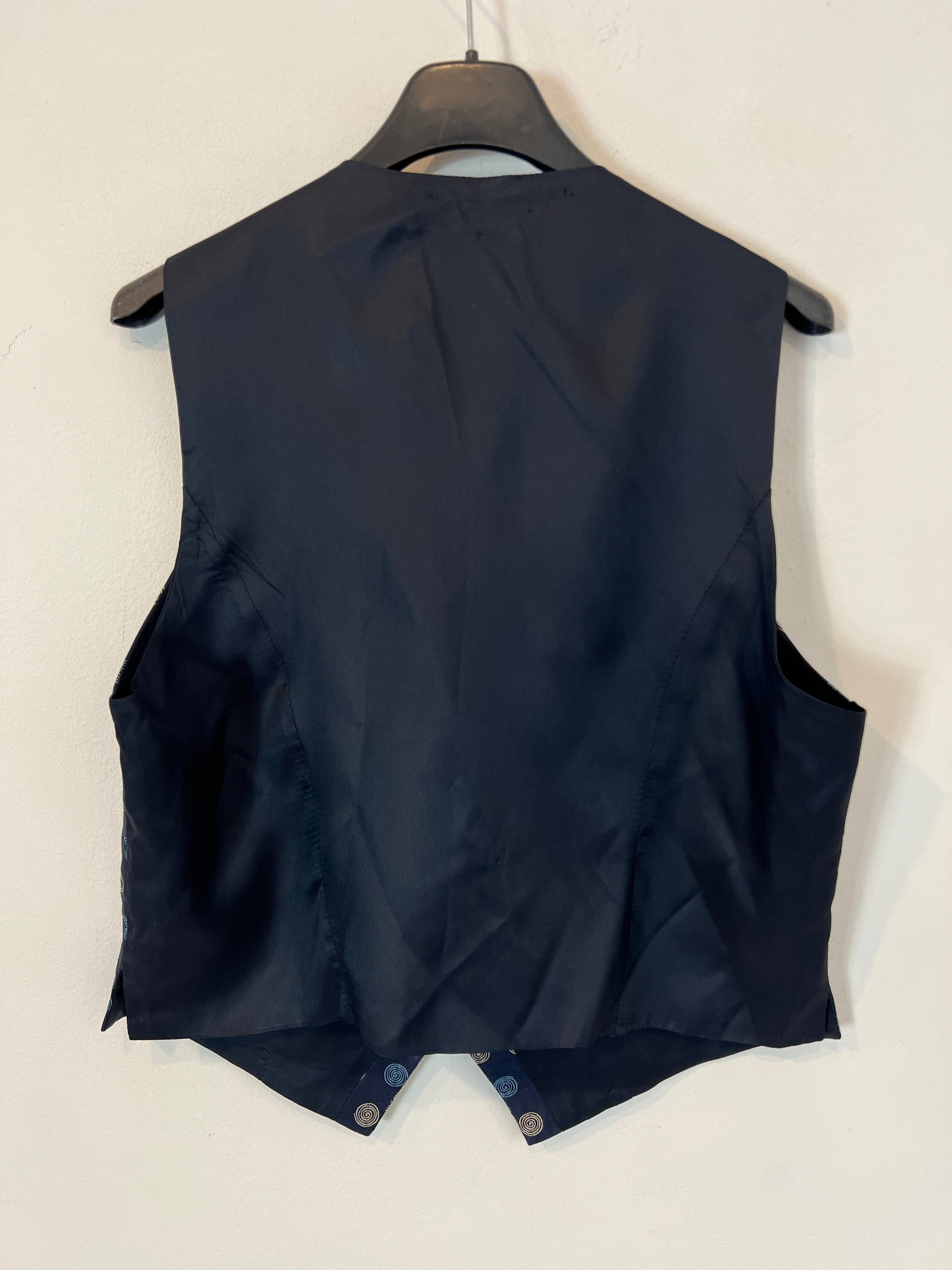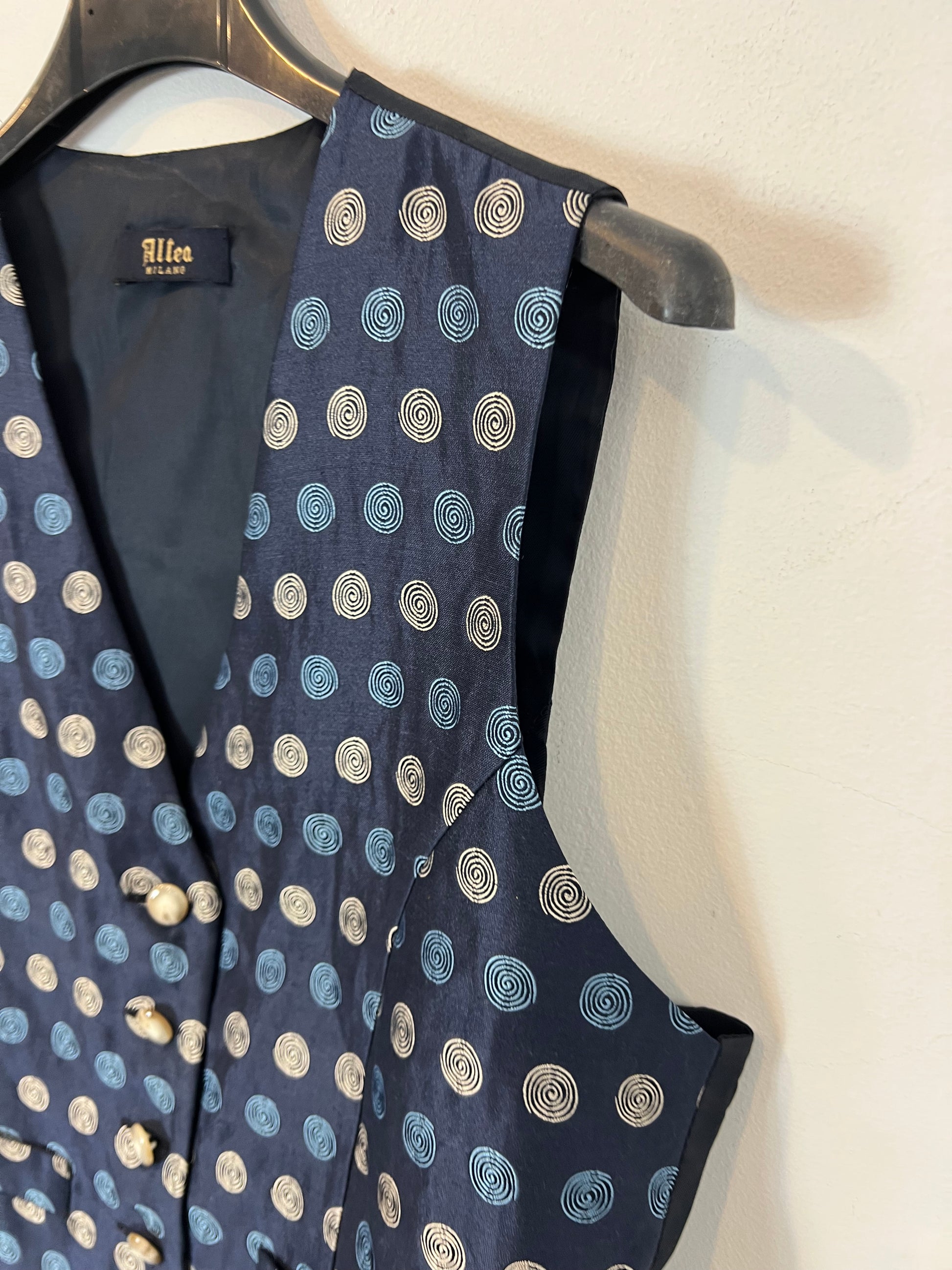 ALTEA MILANO. Chaleco seda azul dibujos. T M