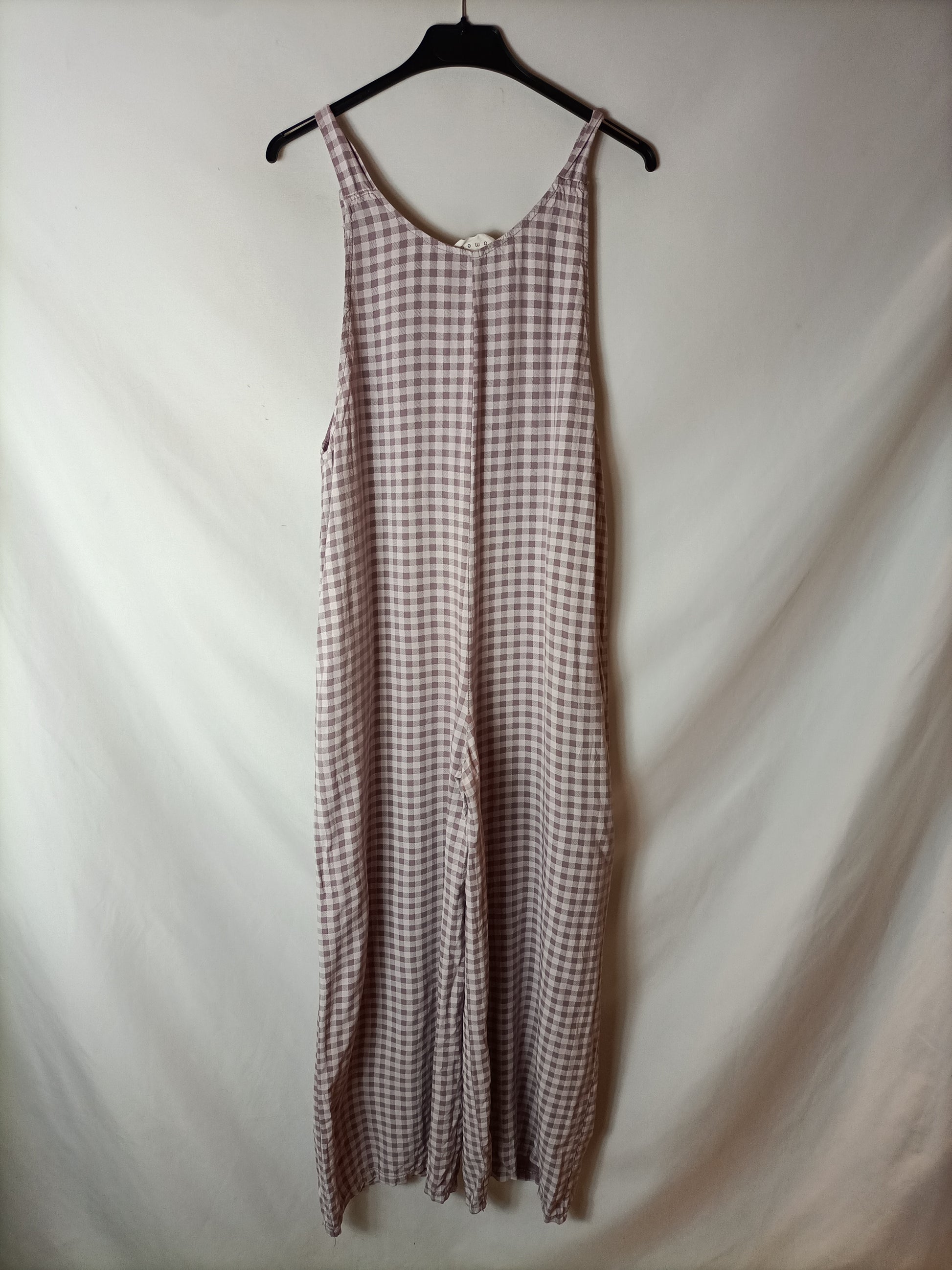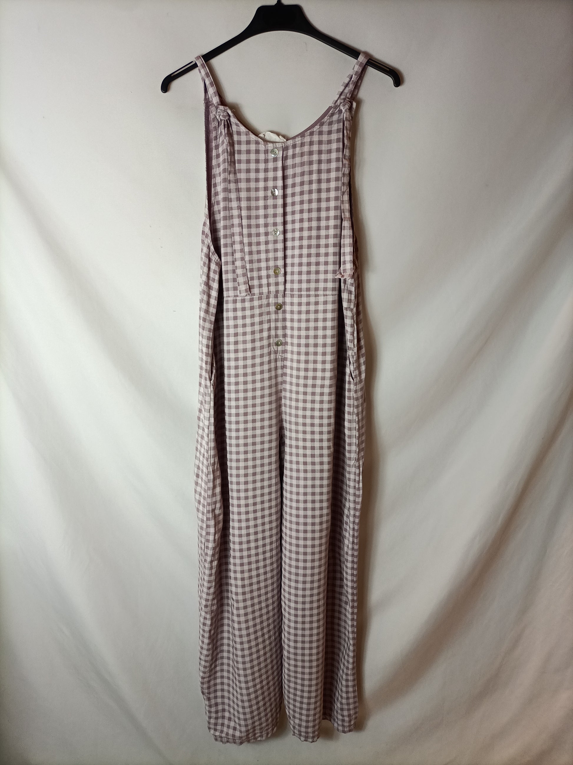 Mono fluido de cuadros vichí con tirantes ajustables.