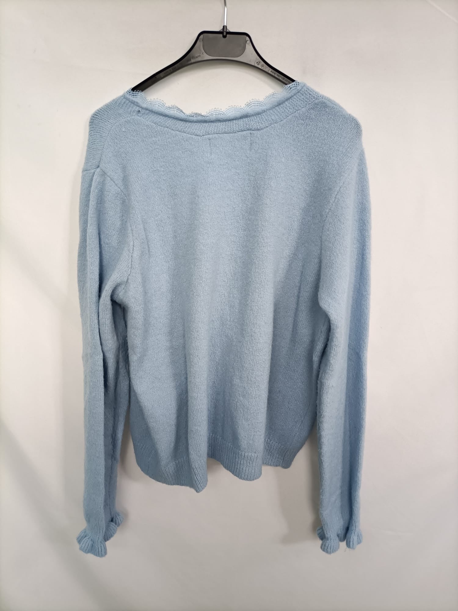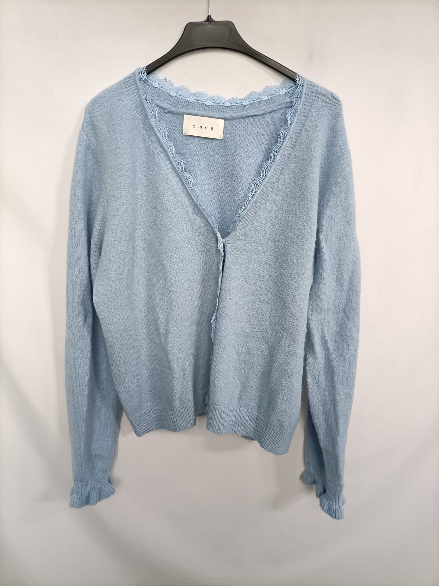 Amee. Rebeca azul con detalle de encaje. Largo 58 cm