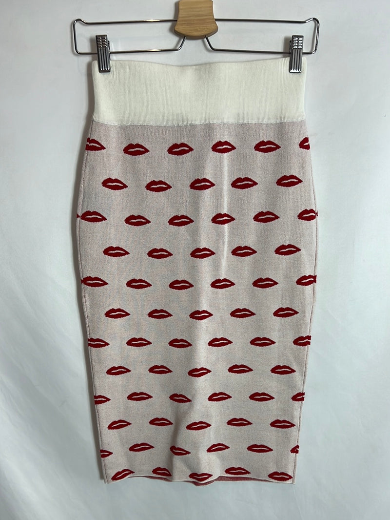 NUEVO CON ETIQUETA. Falda midi punto labios. Tejido poco elástico. Largo 68 cm y cintura 32cm