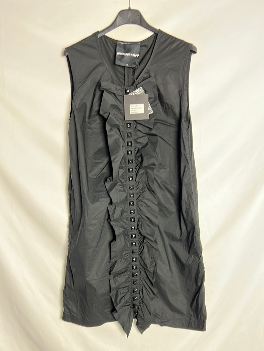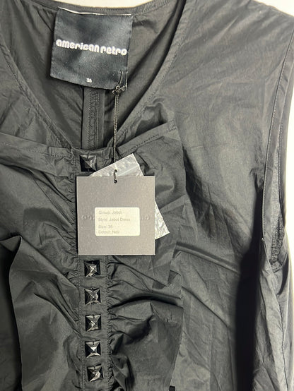 AMERICAN RETRO.Vestido corto negro tachuelas y volantes T.36