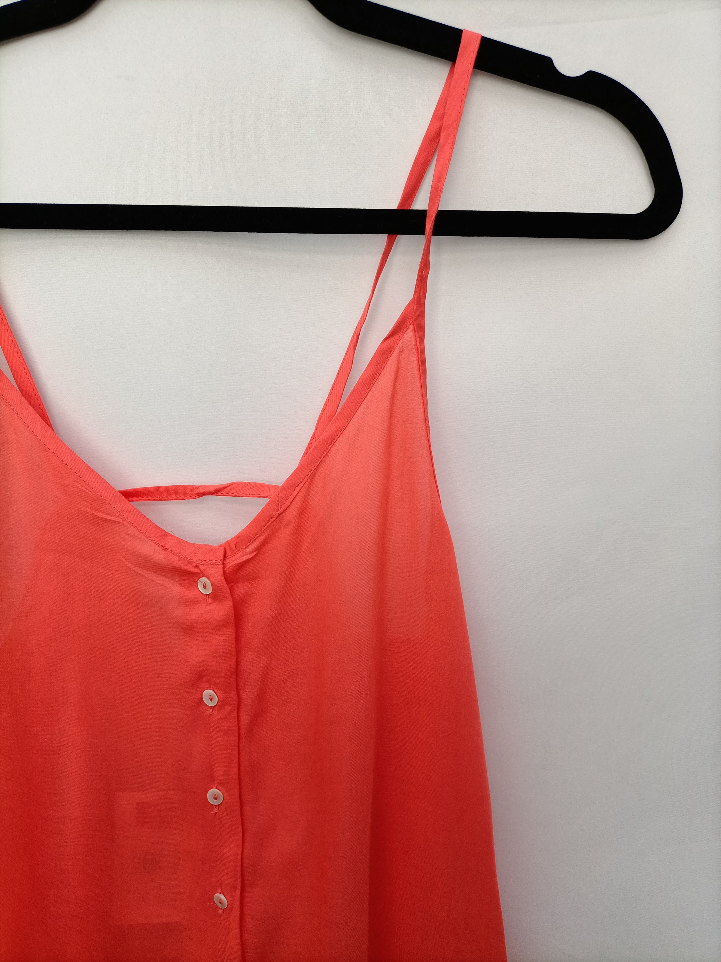 Top naranja de tirantes Abotonado por delante y mini volante. No elástico.