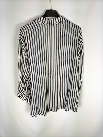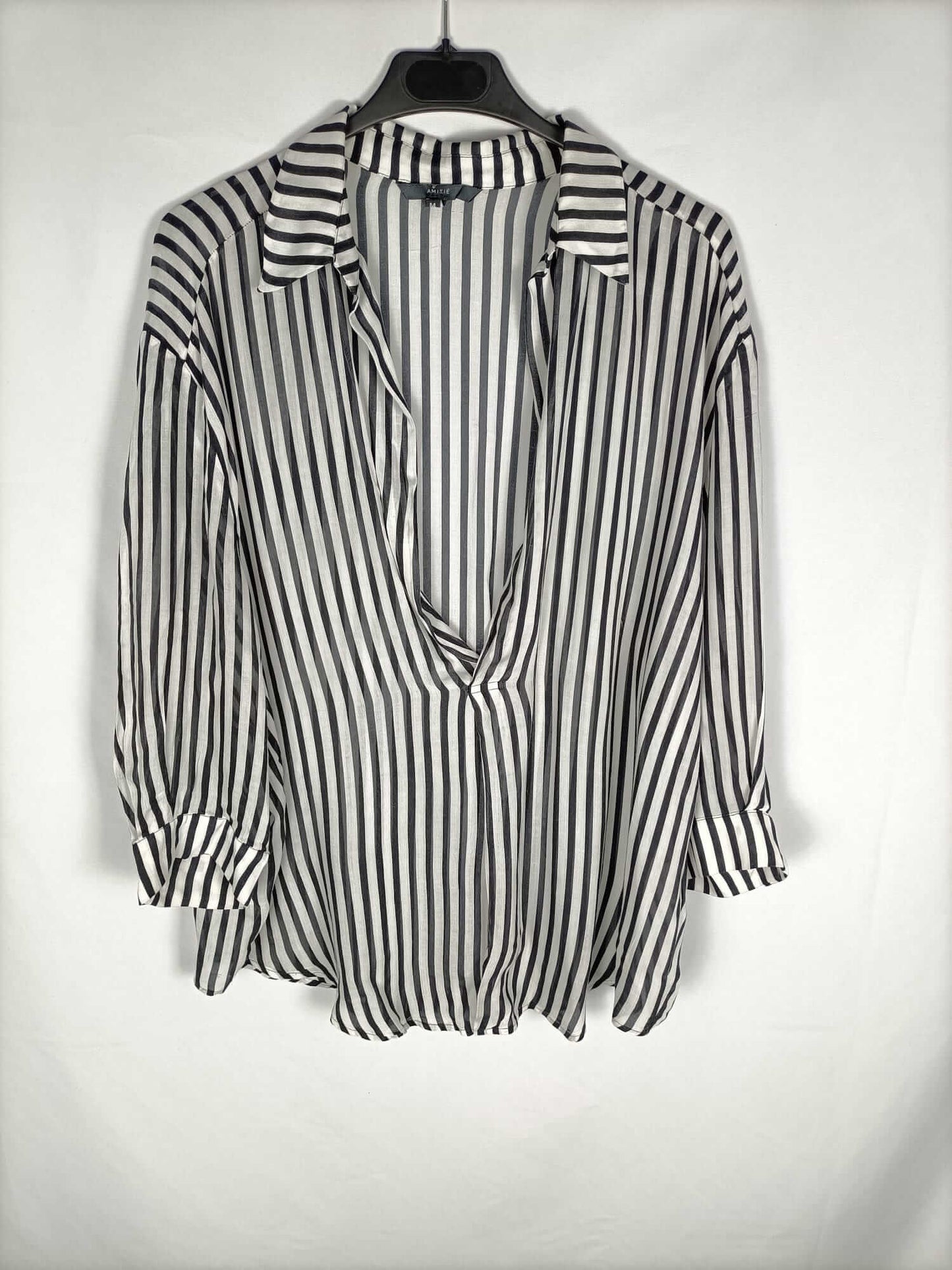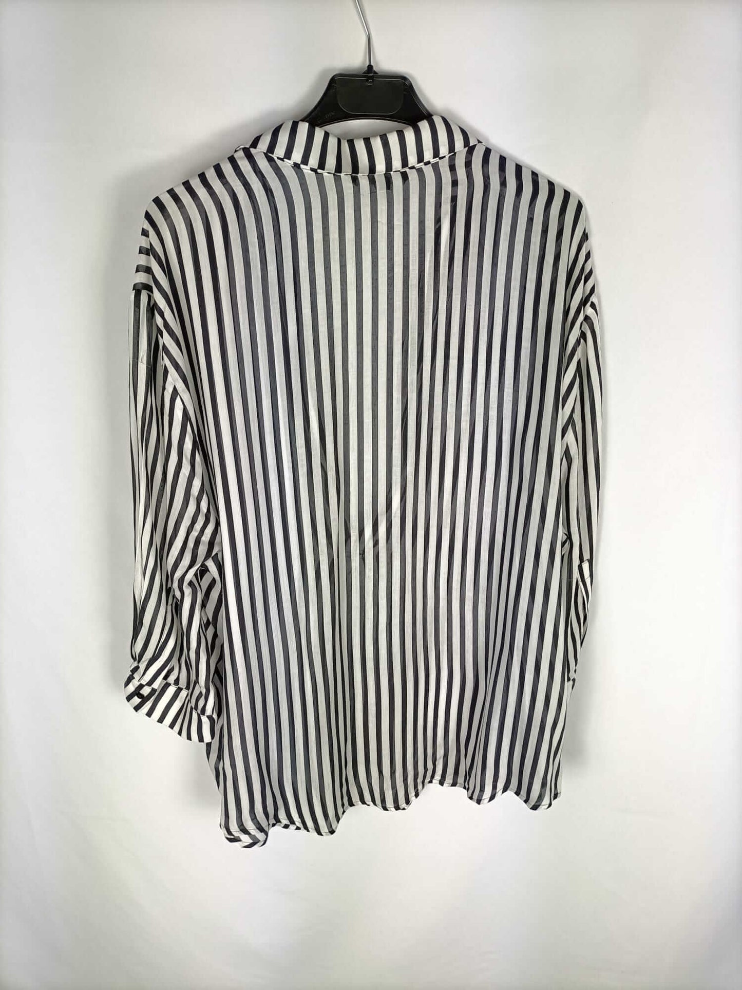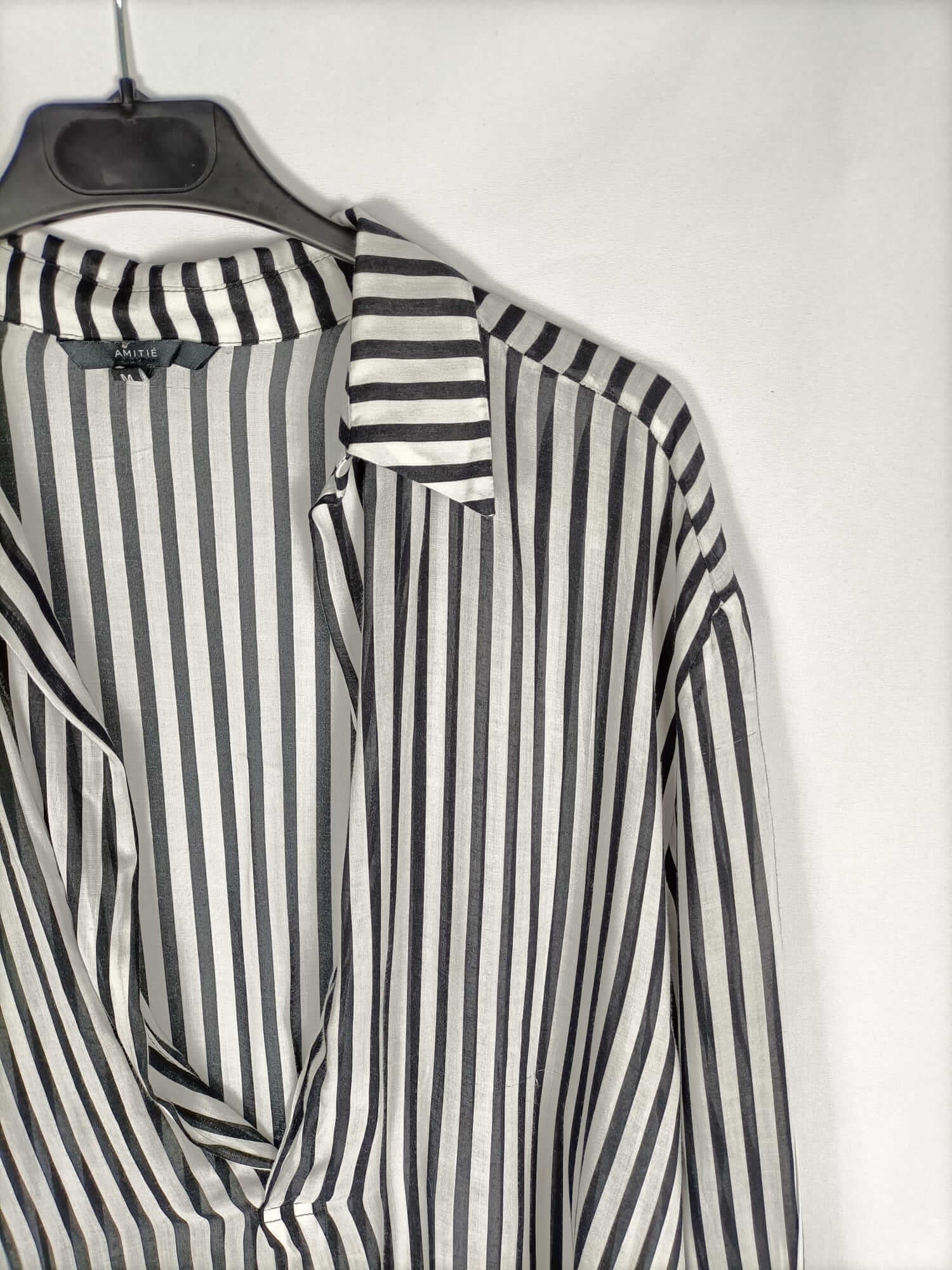 Amitie. Blusa fluida de rayas negro y blanco estilo oversized. Finita. Escote amplio. De sisa a sisa 68 cm largo 72 cm