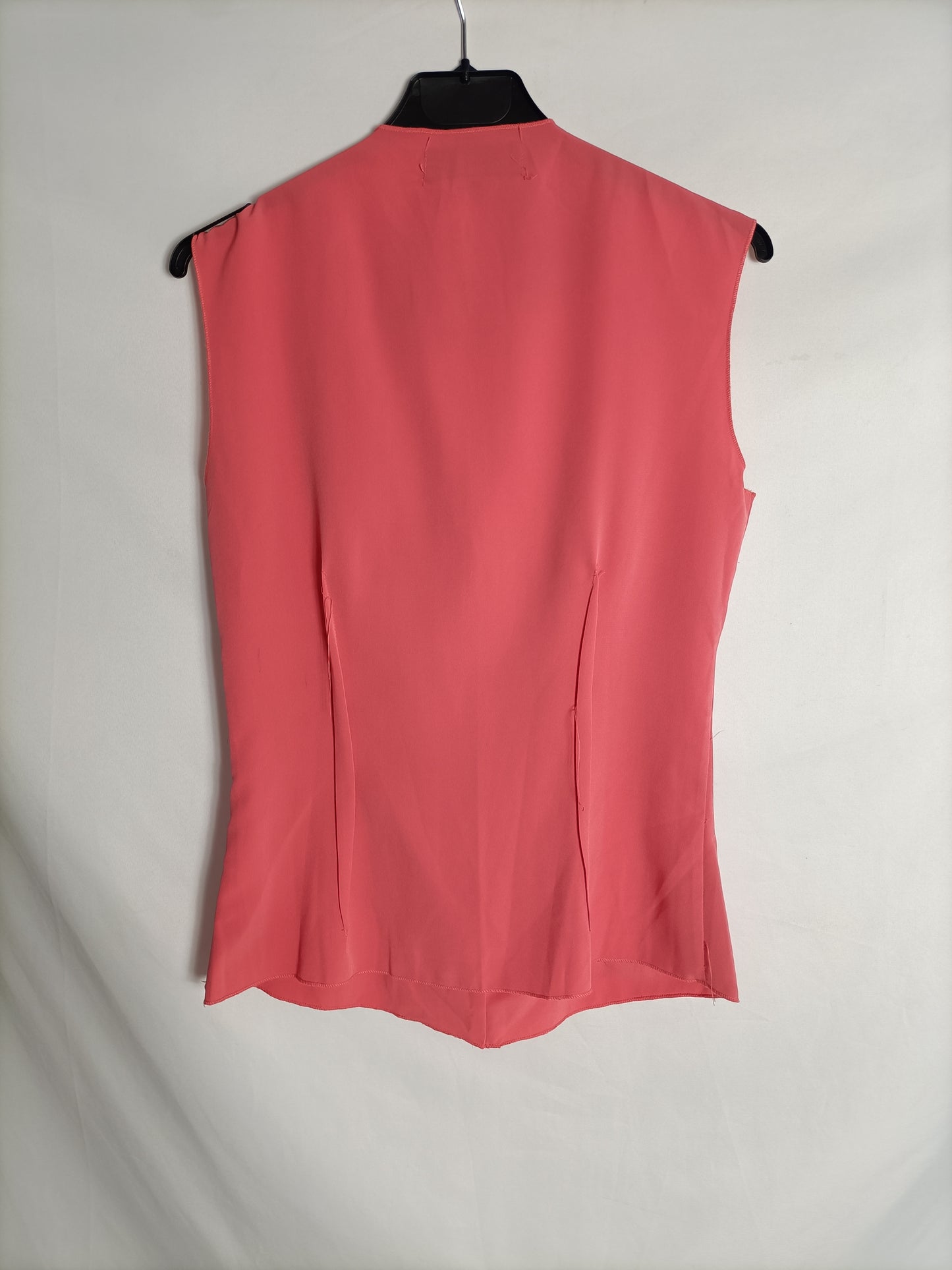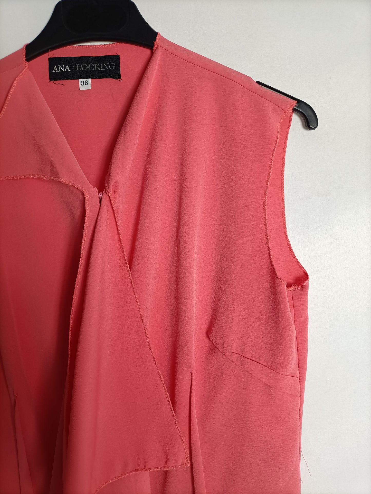 Top coral con pinzas y detalle de efecto volante. de sisa a sisa 46 cm
