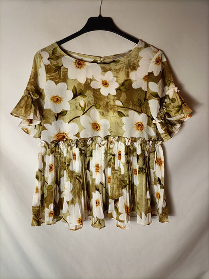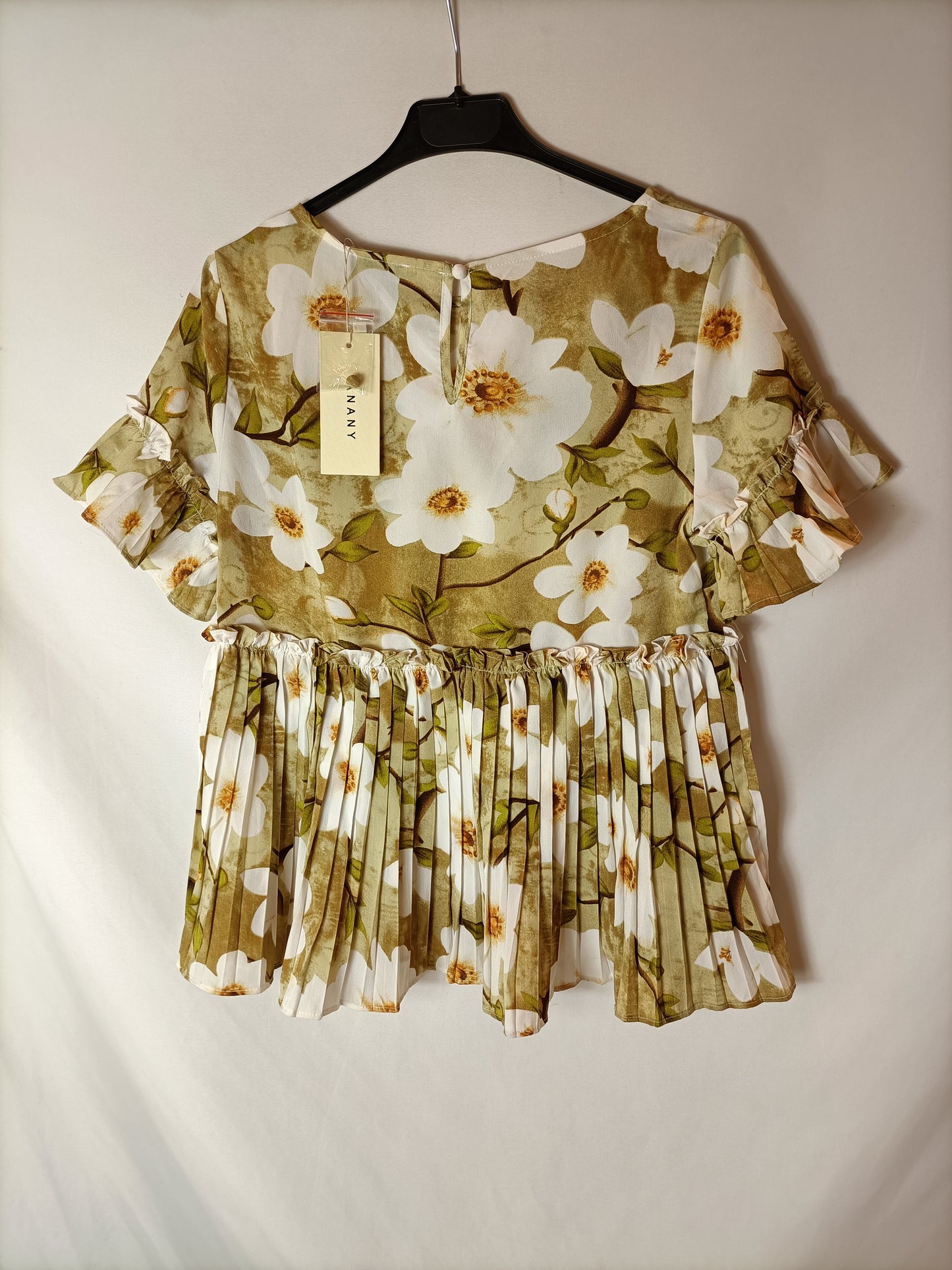 NUEVO CON ETIQUETA. Top flores plisado tonos beiges