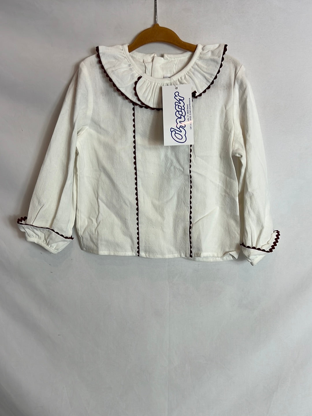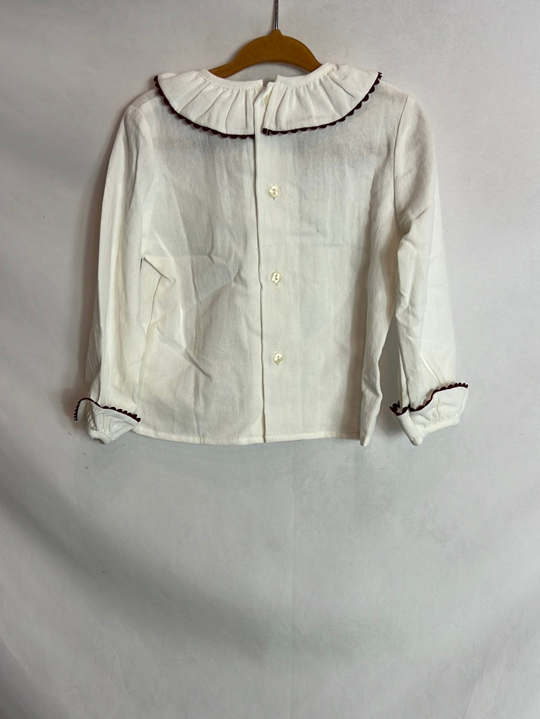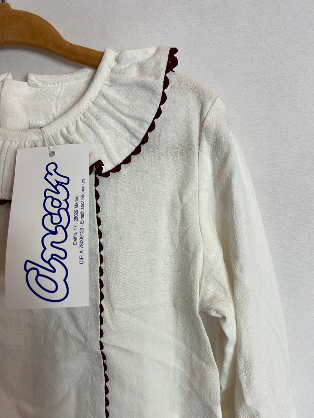 ANCAR. Camisa bebé tablón y piquillo burdeos. T 18 Meses