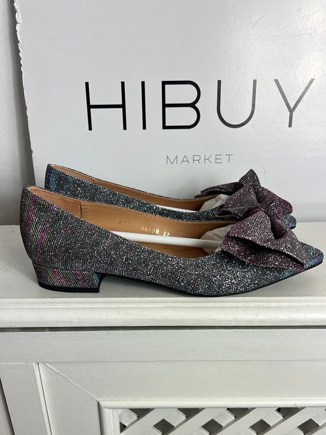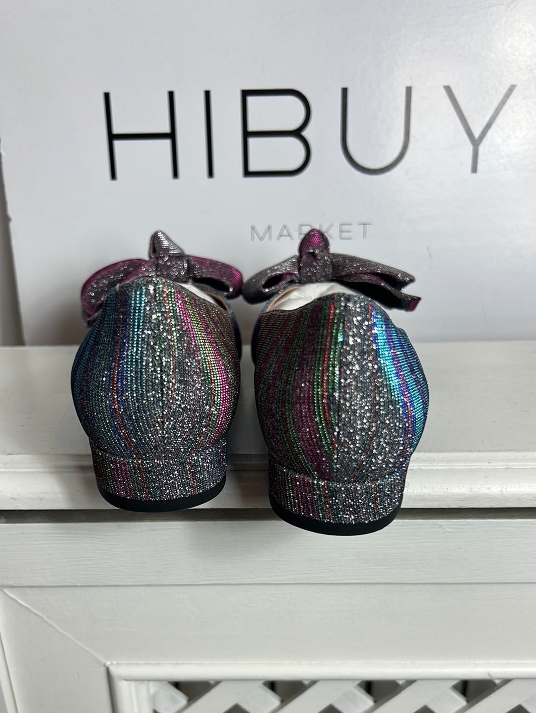 NUEVOS SIN USO. Zapatón purpurina lazo tacón bajo