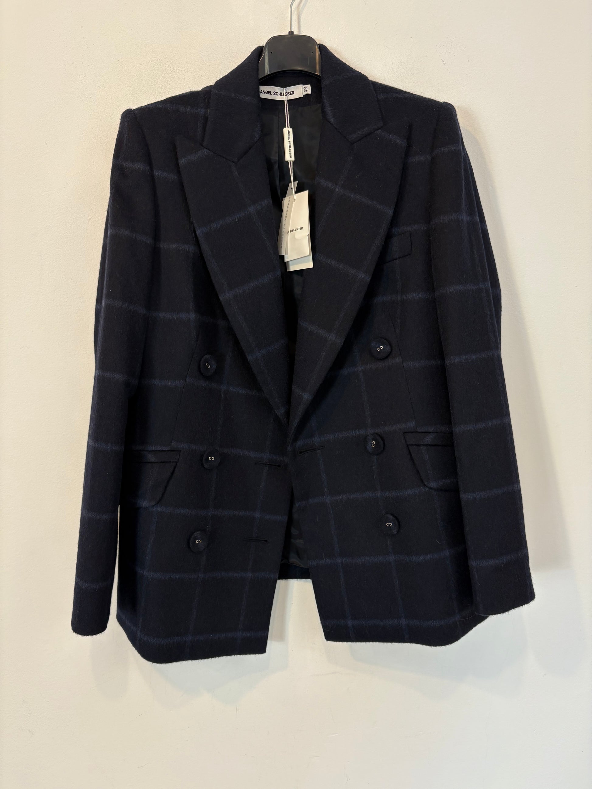 ANGEL SCHELESSER. Blazer azul cuadros lana