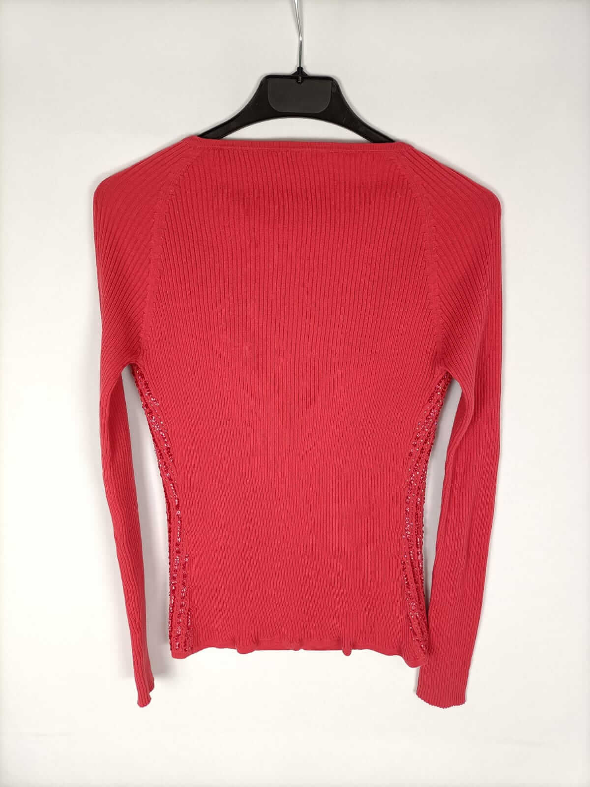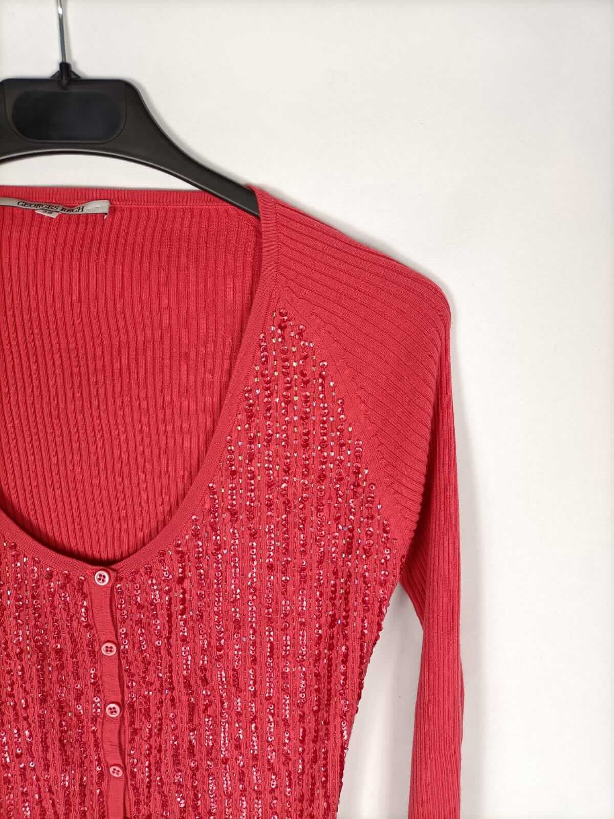 Georges rech. Rebeca color coral de lentejuelas. Ajustada y elástica. Largo 59 cm