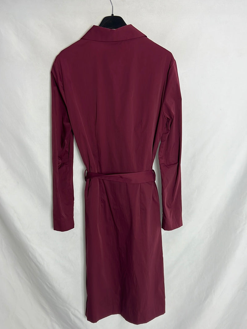 Vestido midi burdeos con cinturón. Tejido no elástico. Largo 104cm