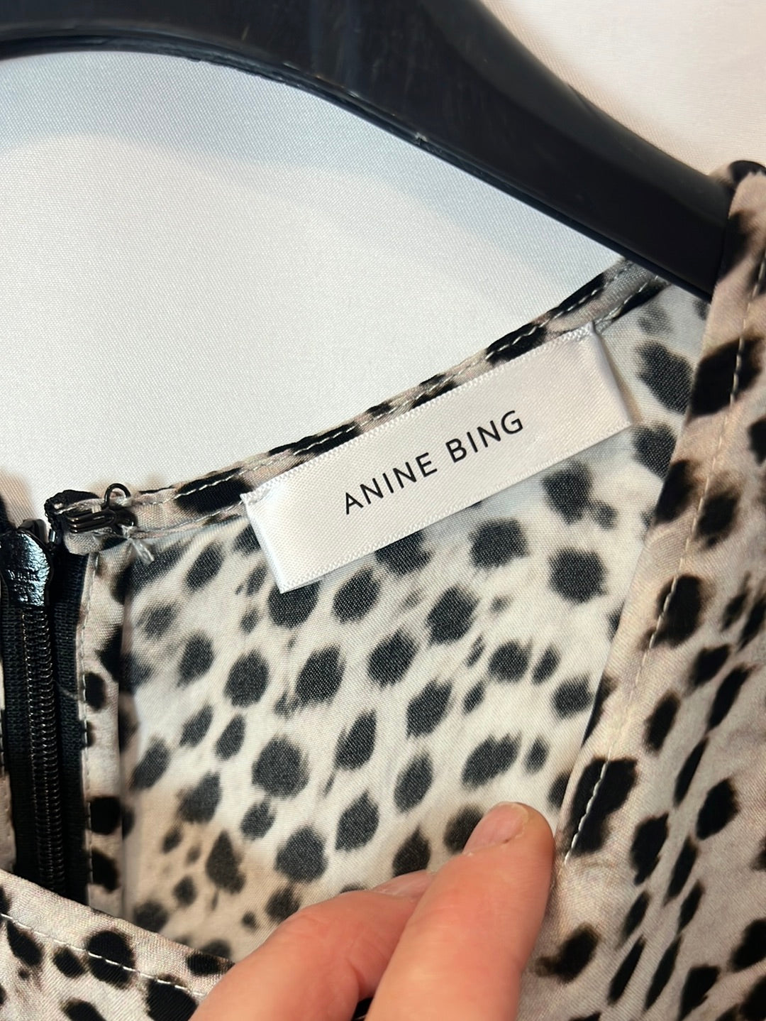 Vestido corto animal print detalle manga fruncida. No elástico 100% cupro. Hombros 38cm, espalda 44cm, largo 80cm. Cadera 50cm
