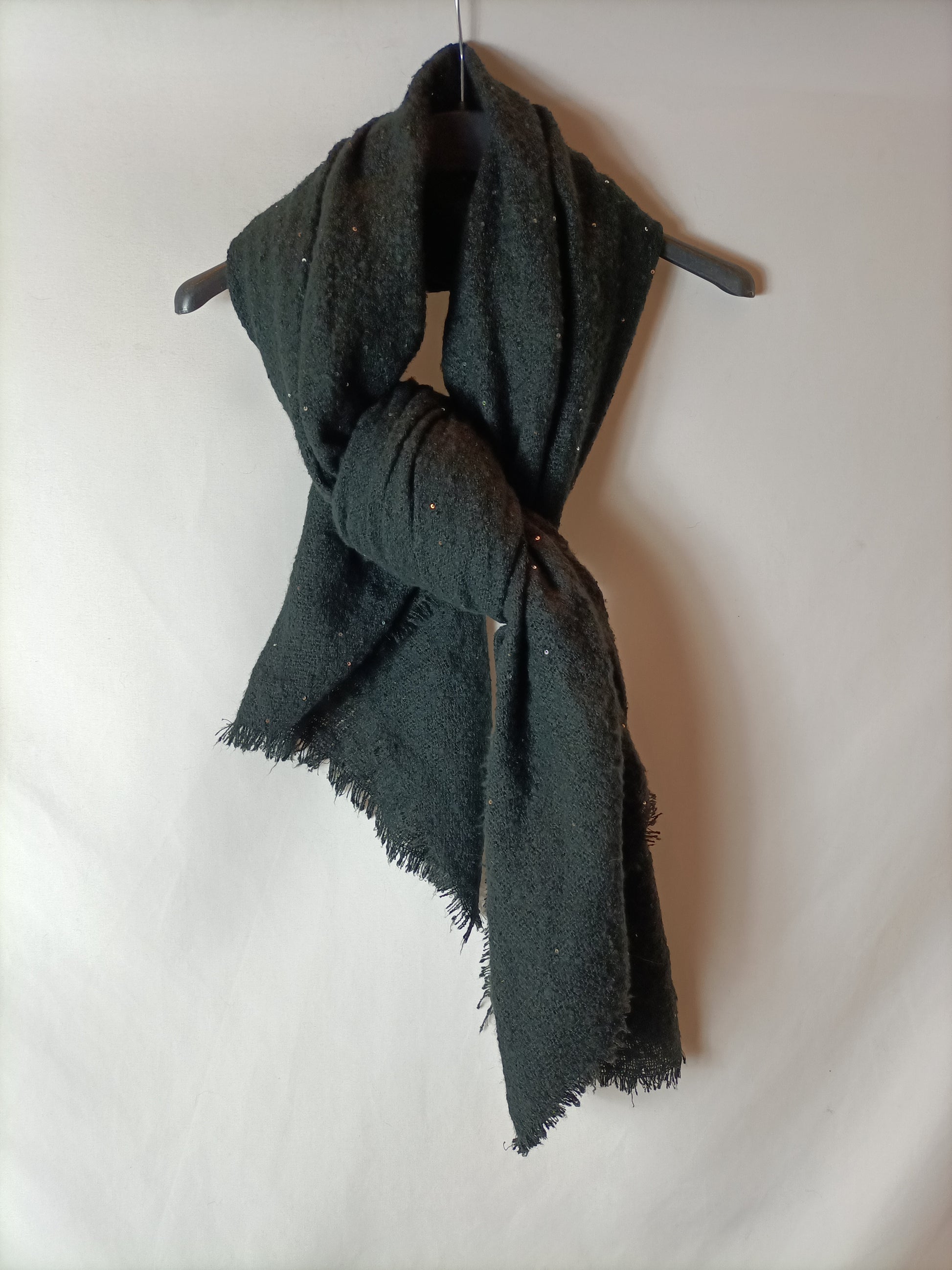 bufanda negra con detalle de lentejuelas.