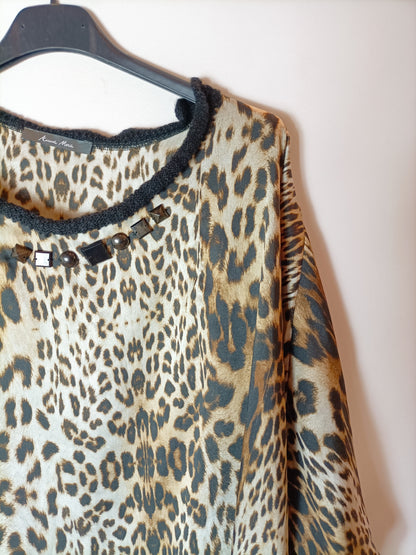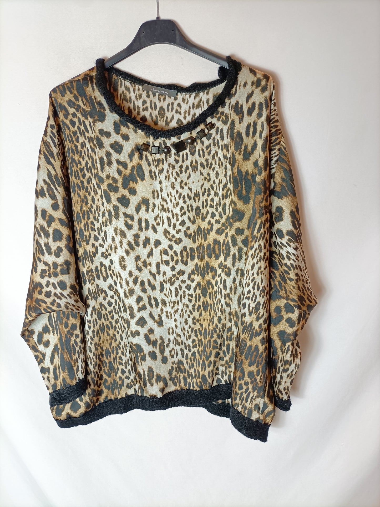 ANNA MORA. Blusa animal print detalle pedrería. T XL