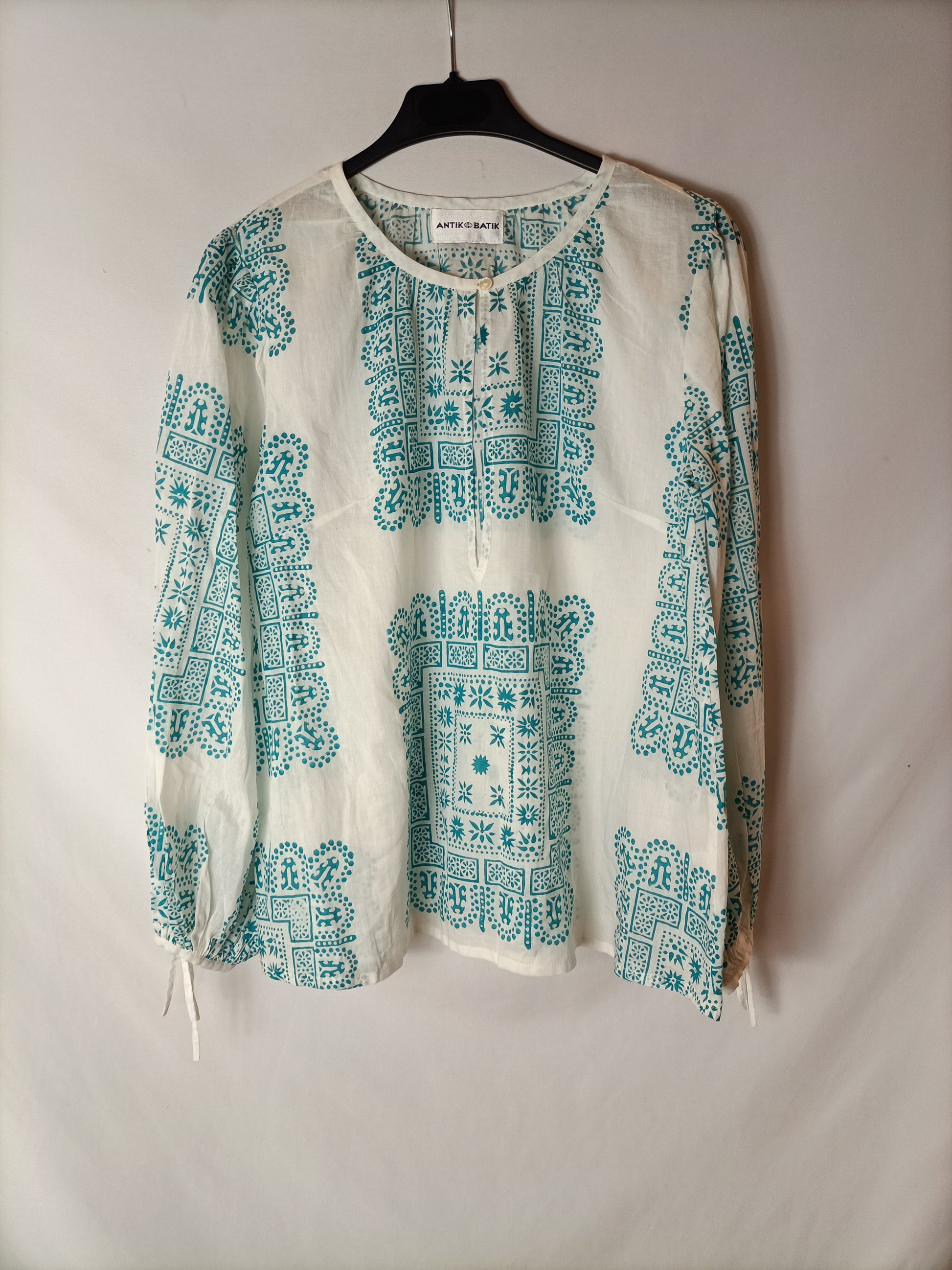 ANTIK BATIK. Blusa blanca dibujo étnico turquesa. T S