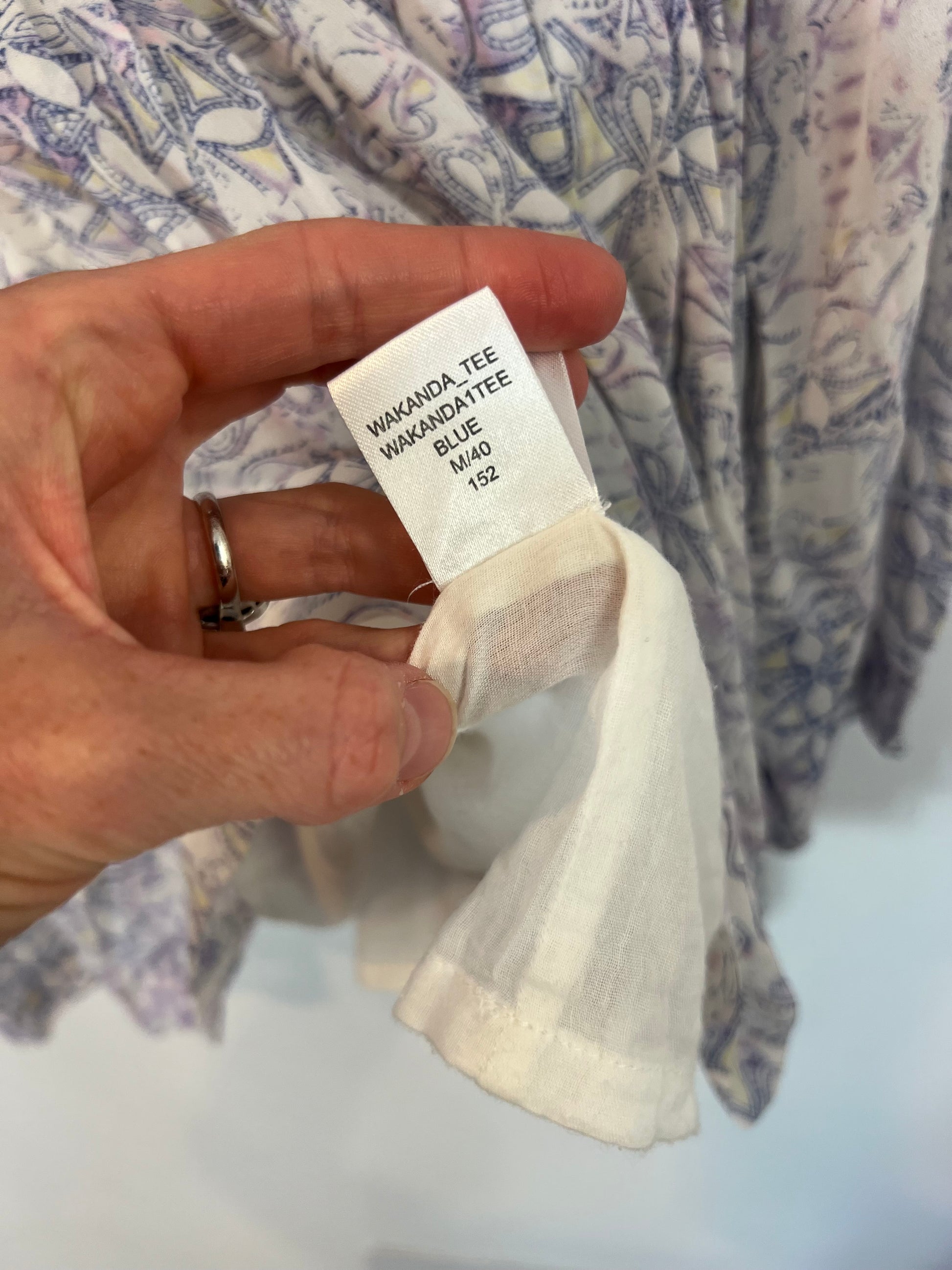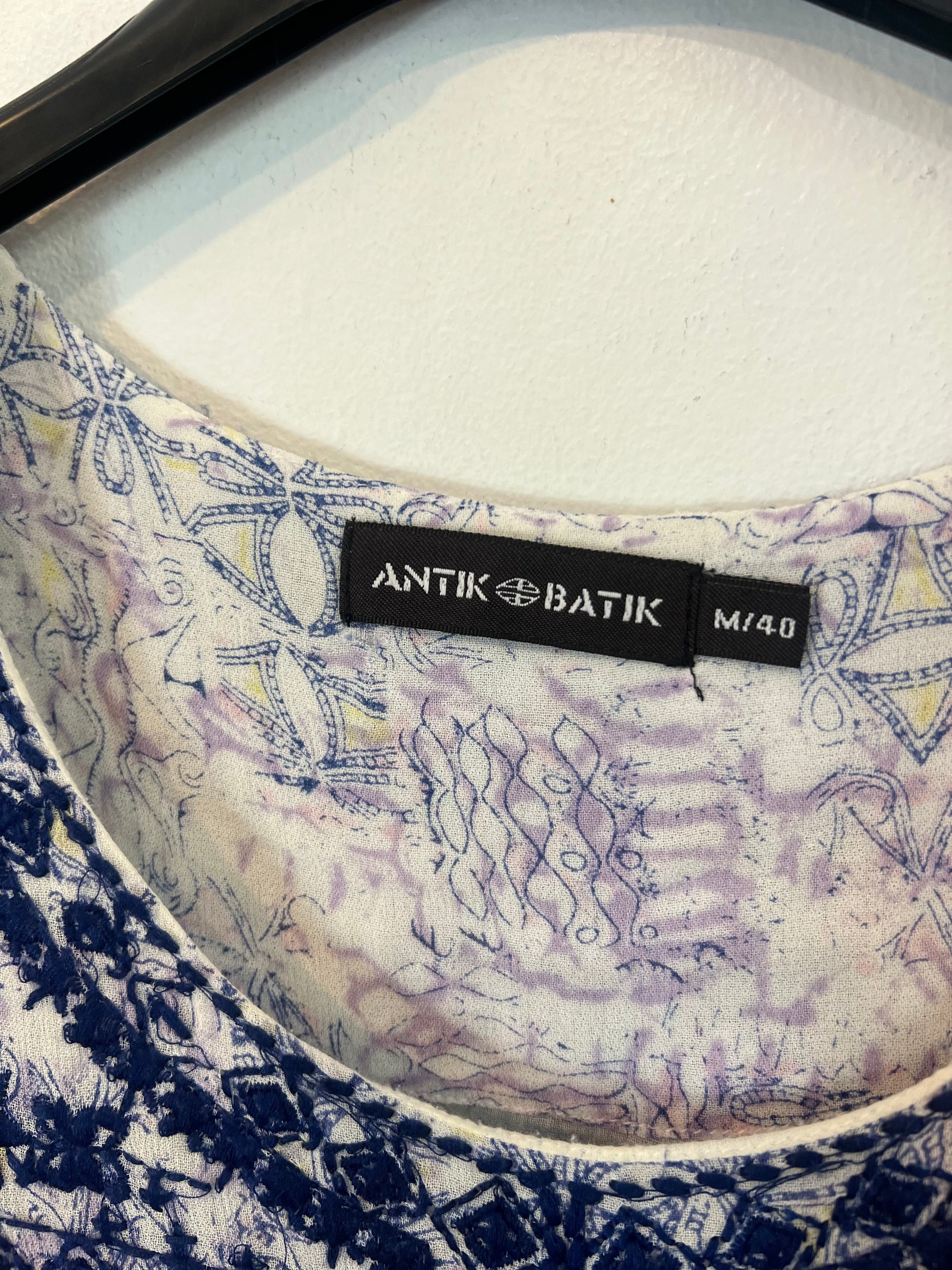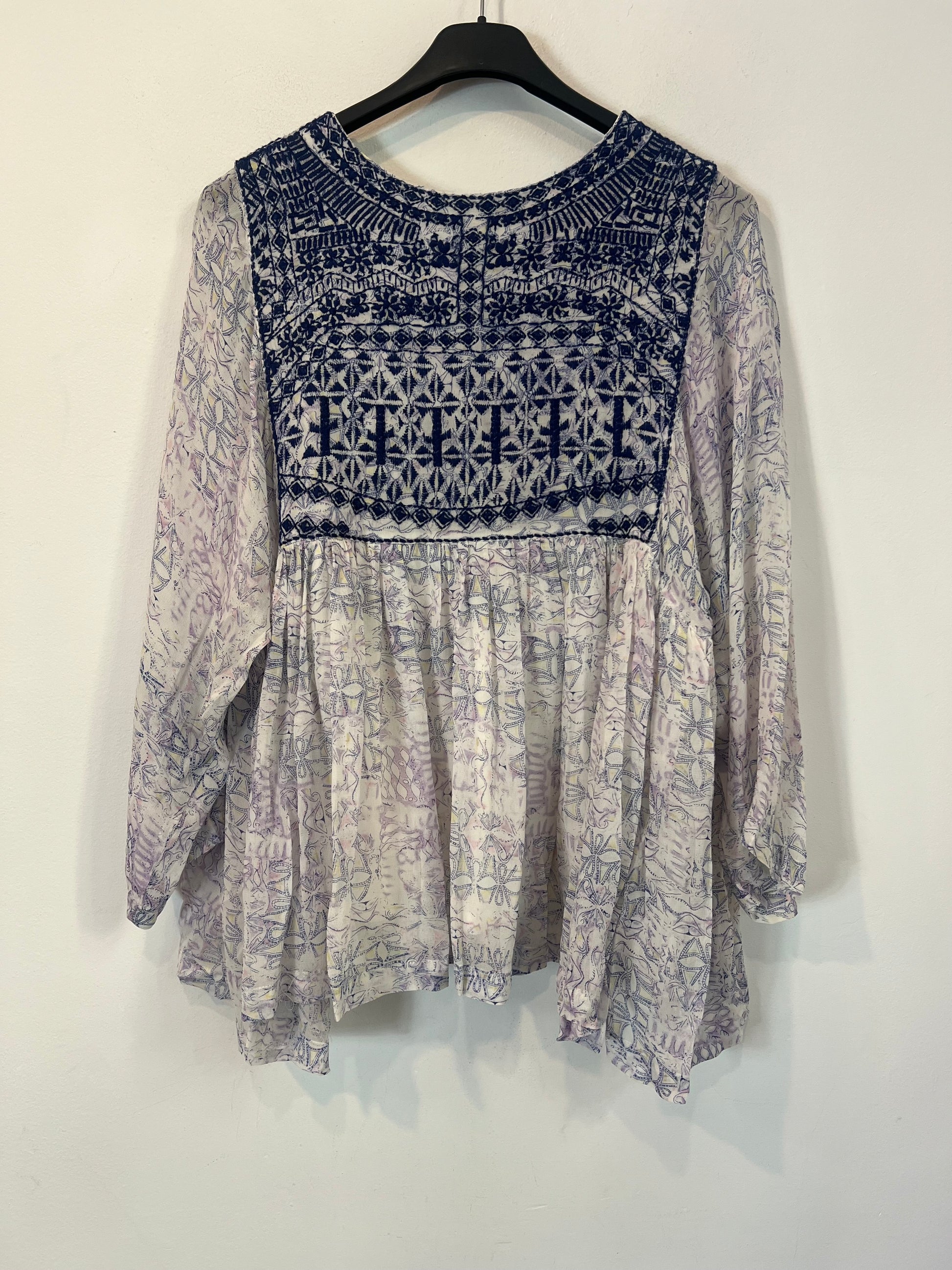 blusa estampada con detalles bordados. de sisa a sisa 51 cm largo 64 cm.