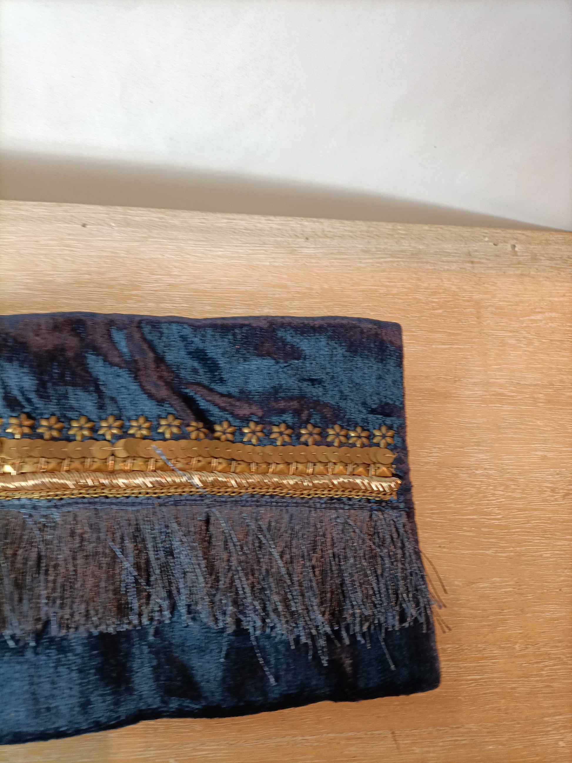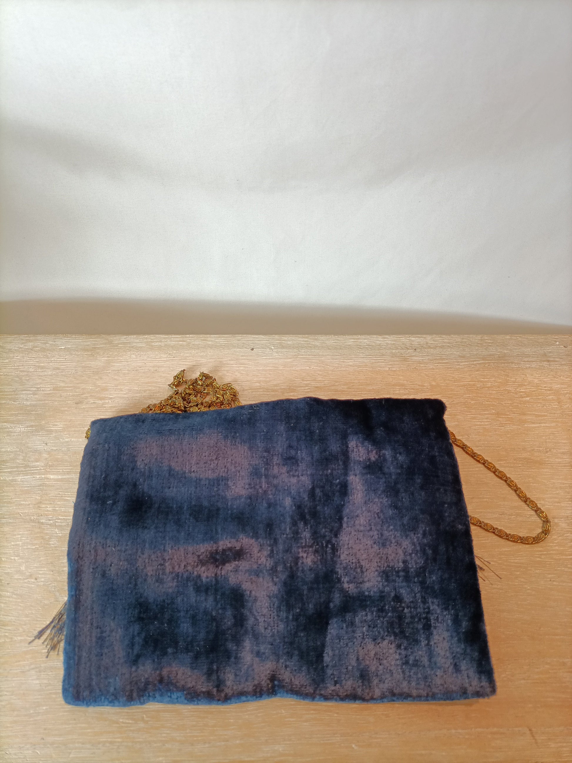 NUEVO CON ETIQUETA. Bolso de terciopelo azul con flecos