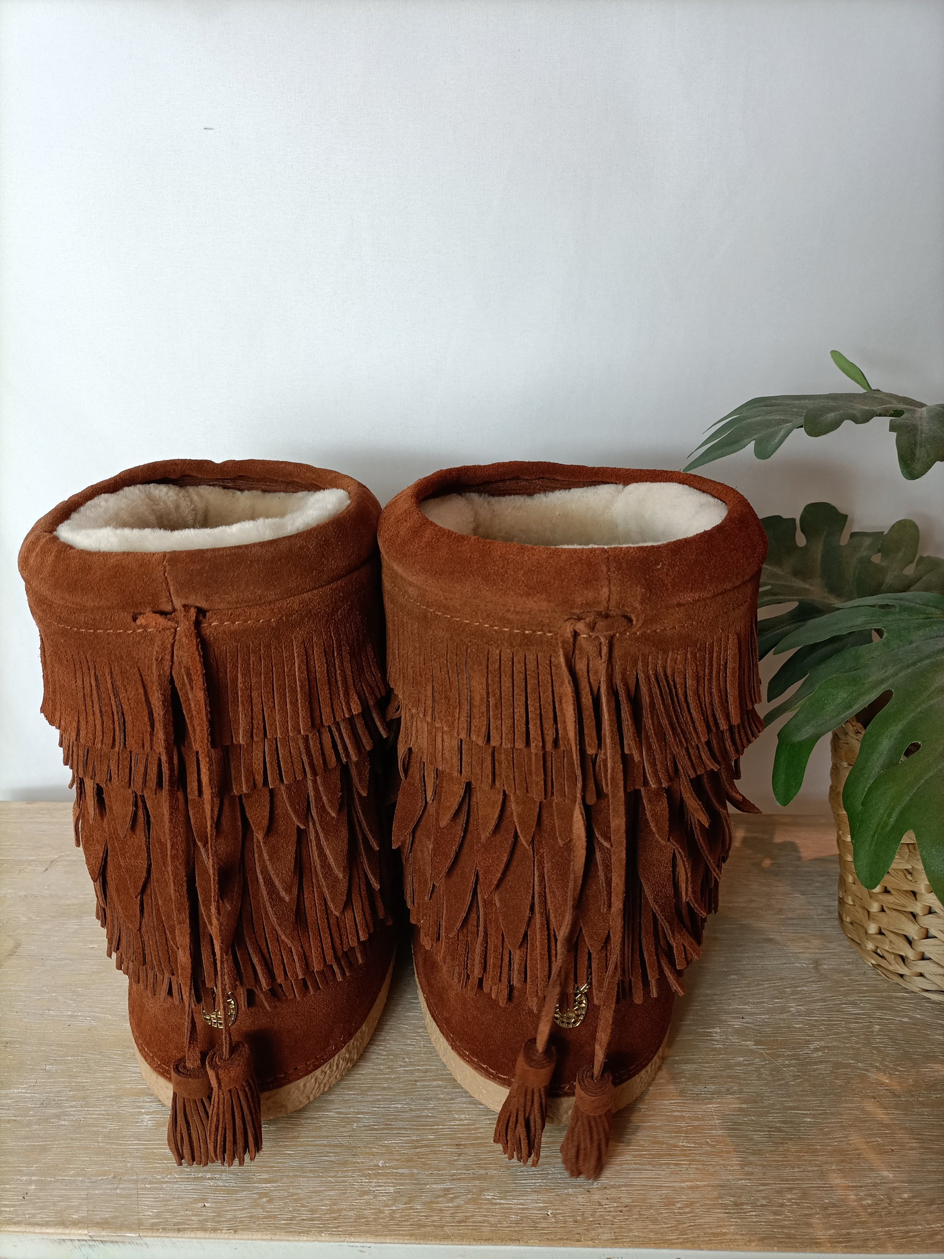 NUEVAS SIN USO.Botas marrones tirando a rojizo con flecos y pelo en el interior