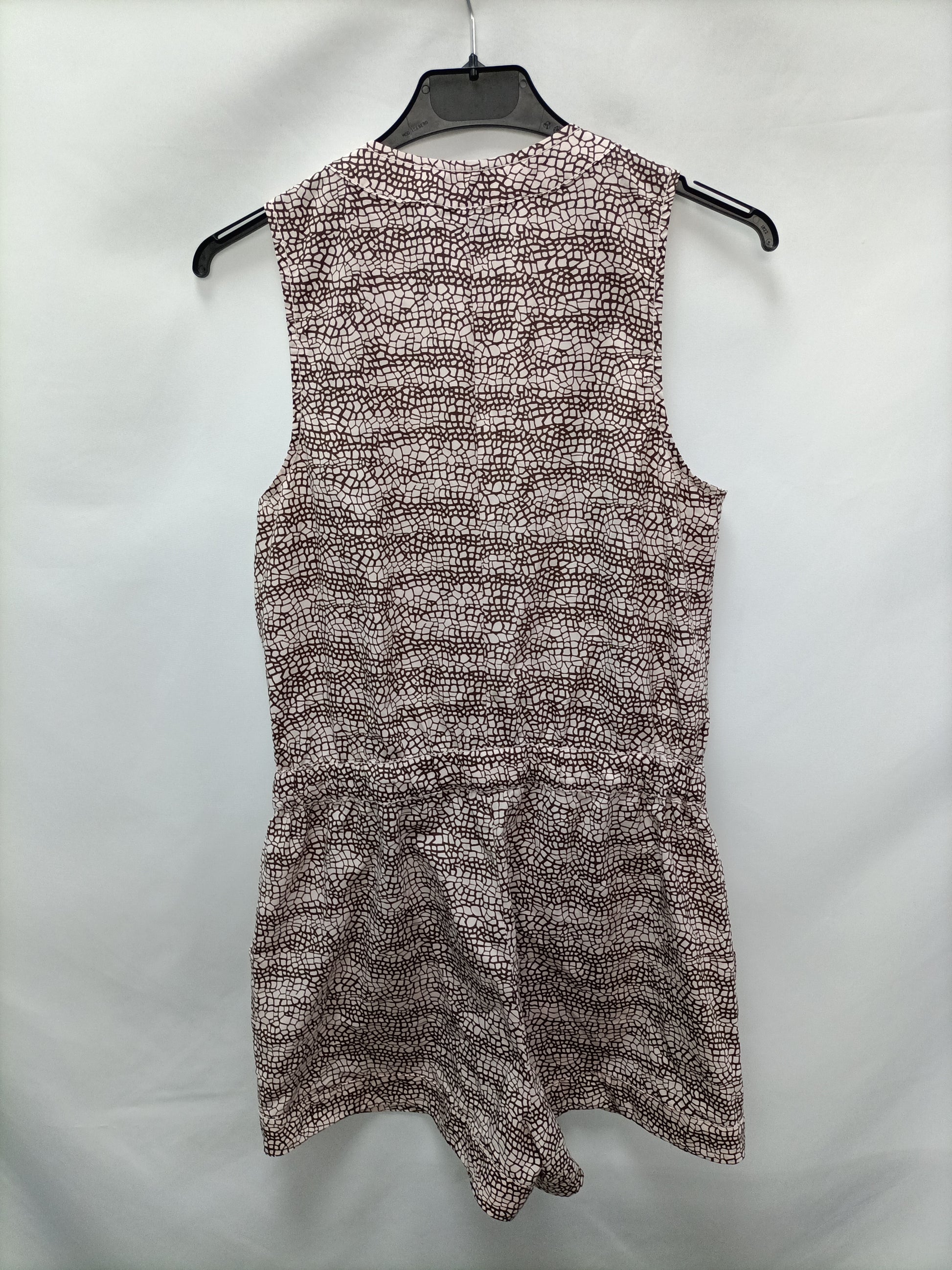 Mono corto fondo rosa palo y estampado tipo jirafa en marrón. Corchetes en la parte de delante. Cintura elástica con cordón para ajustar.