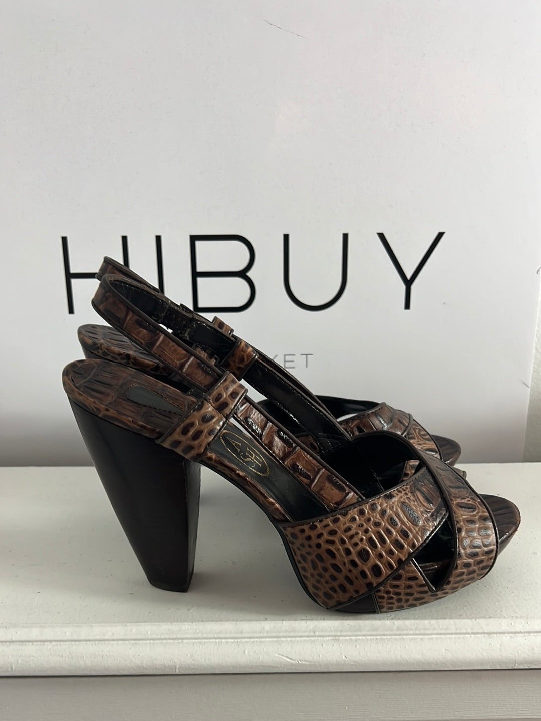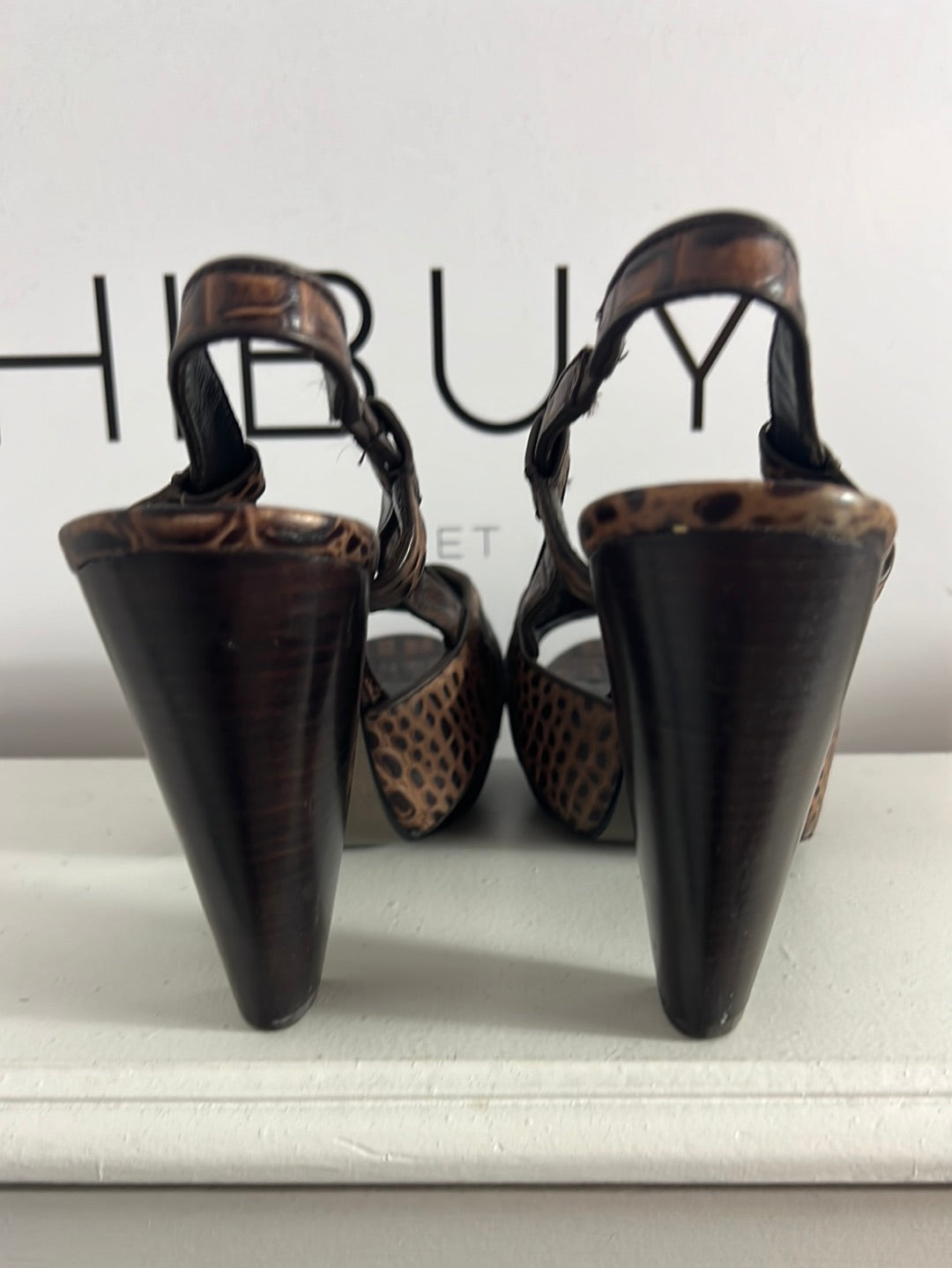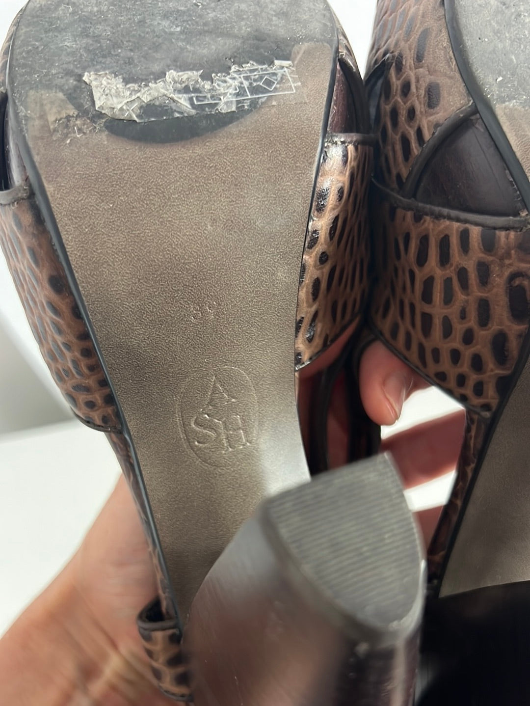 ASH. Sandalia plataforma piel marrón troquelada. T 39