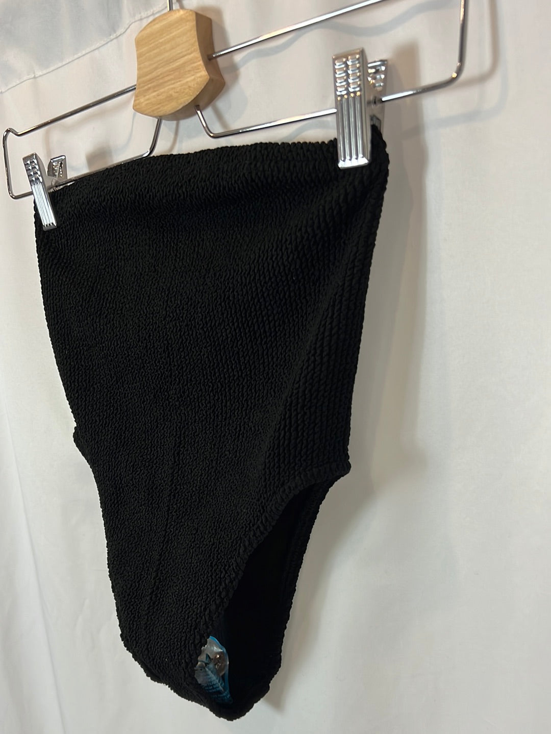 NUEVO CON ETIQUETA. Parte de abajo de bikini negra con textura. Alta. Largo parte delantera 37cm