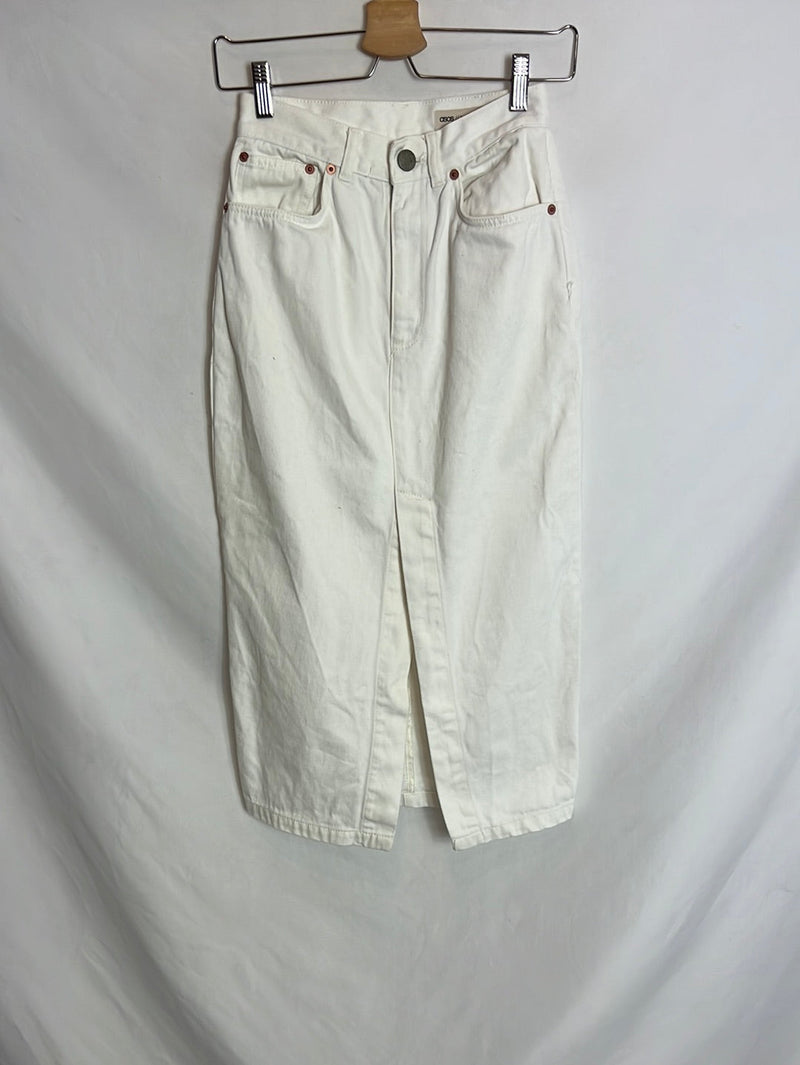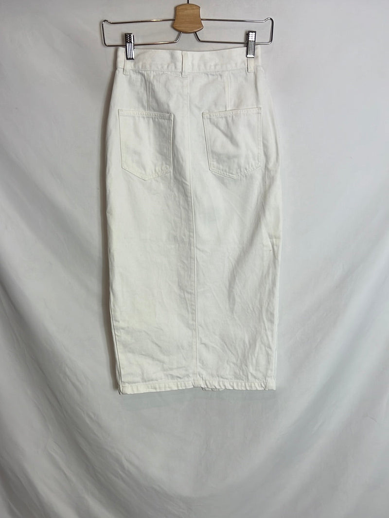 ASOS. Falda midi denim blanco apertura. Cintura 32 cm, cadera 46