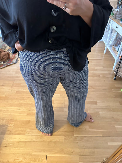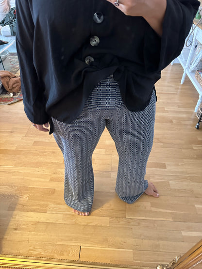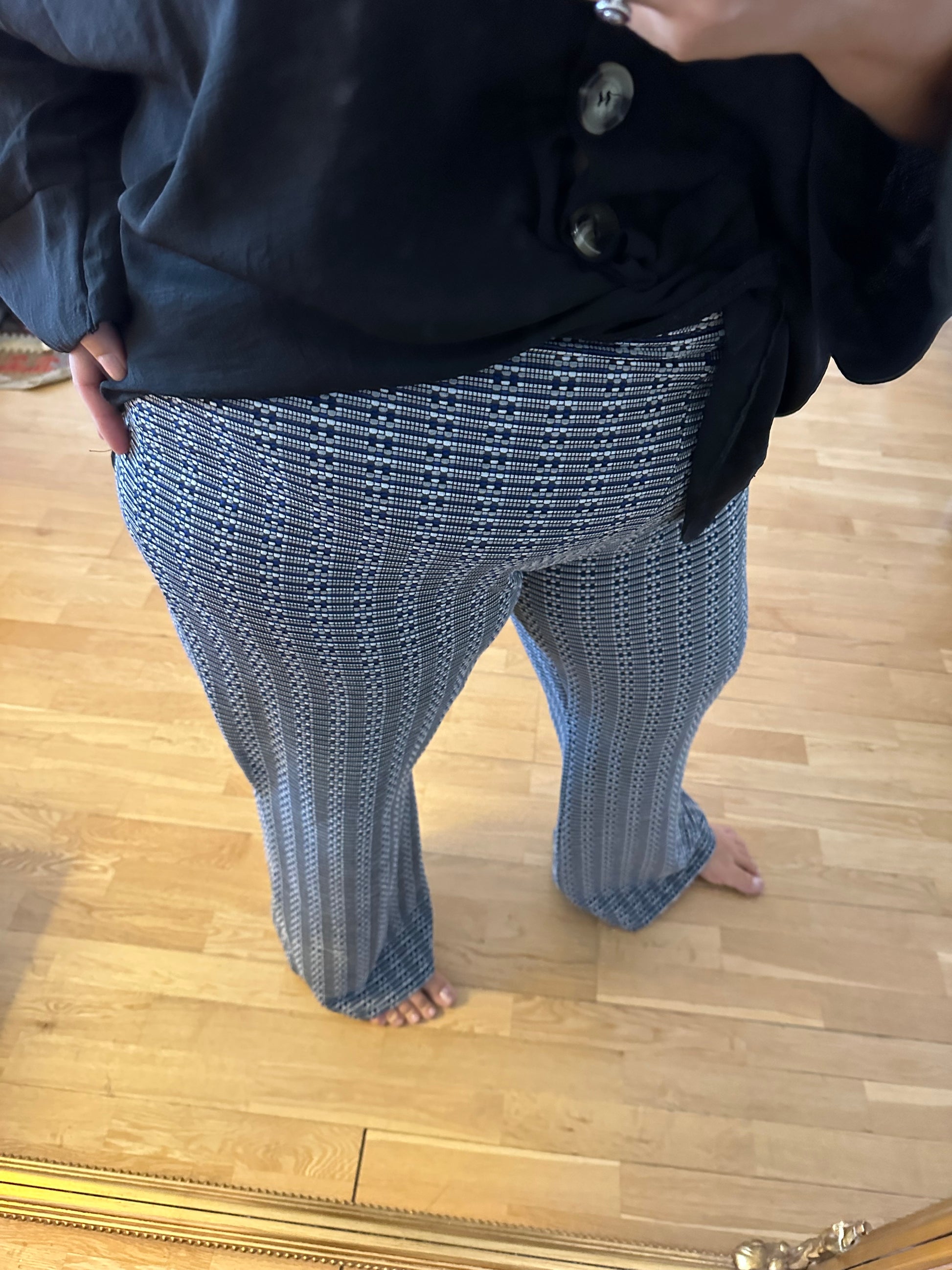 NUEVO CON ETIQUETA. Pantalón negro y azul con textura de tejido elástico.