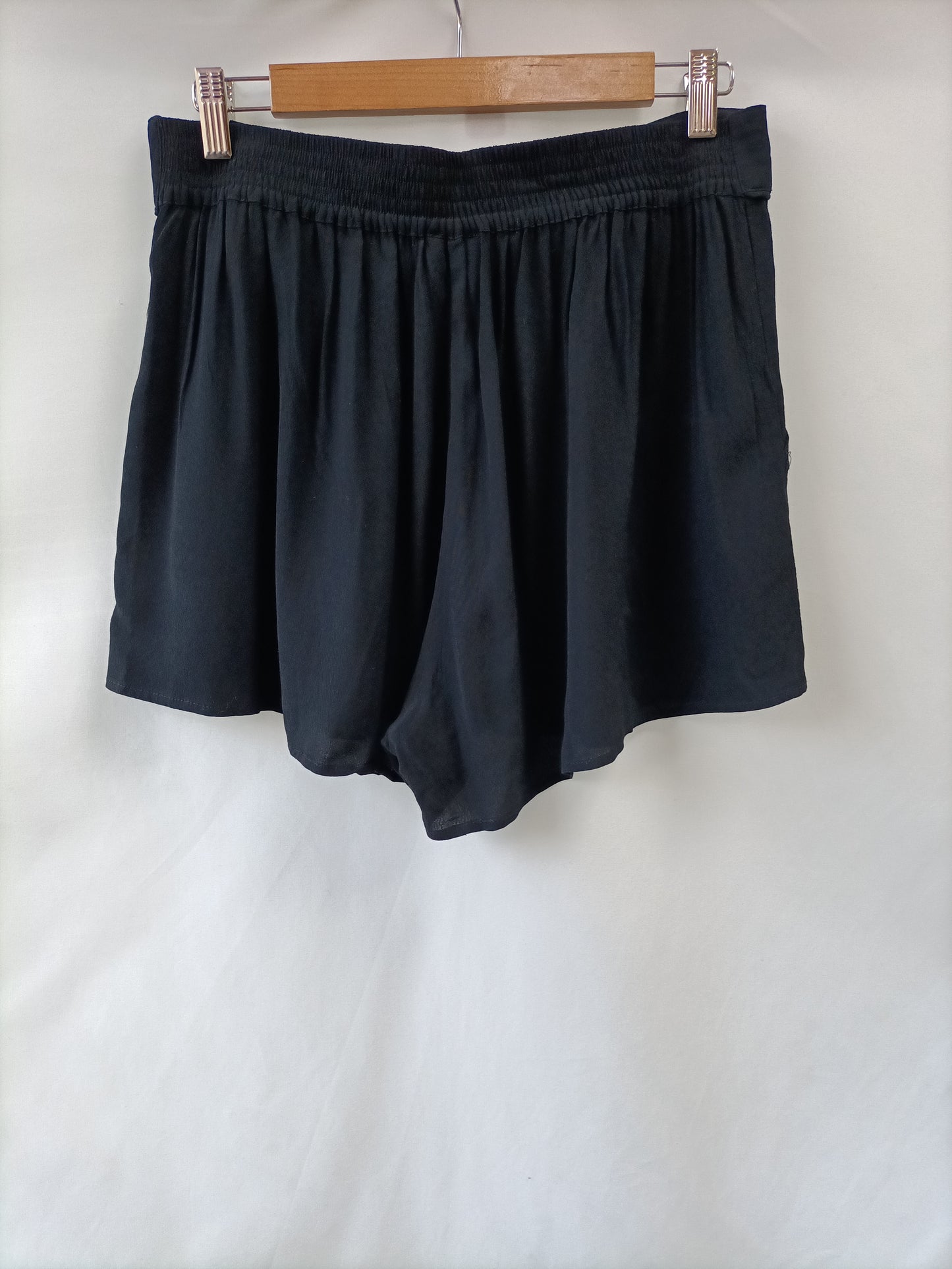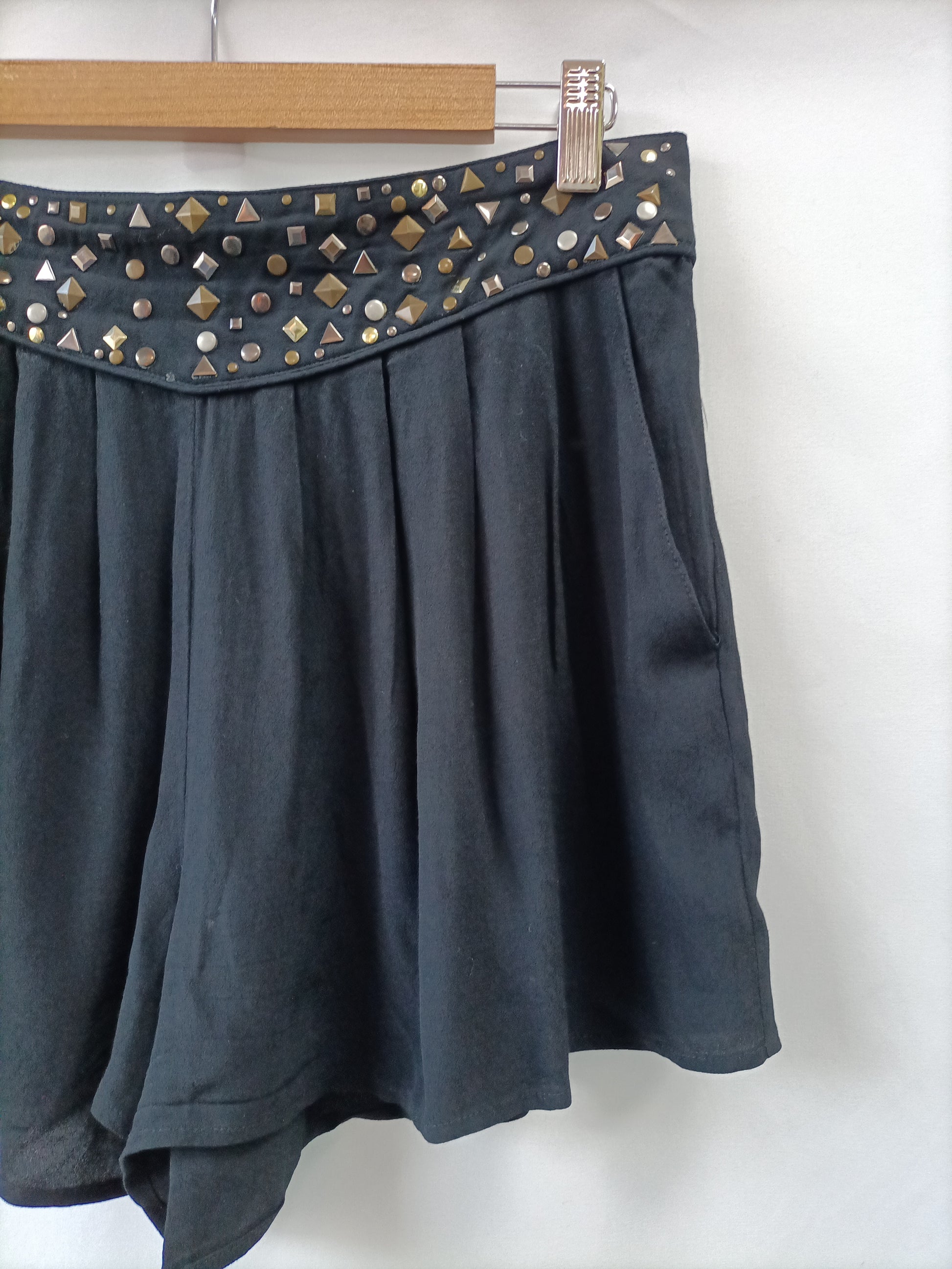shorts negros fluidos pedrería en la cintura. Cintura semielastica. Largo 39 cm