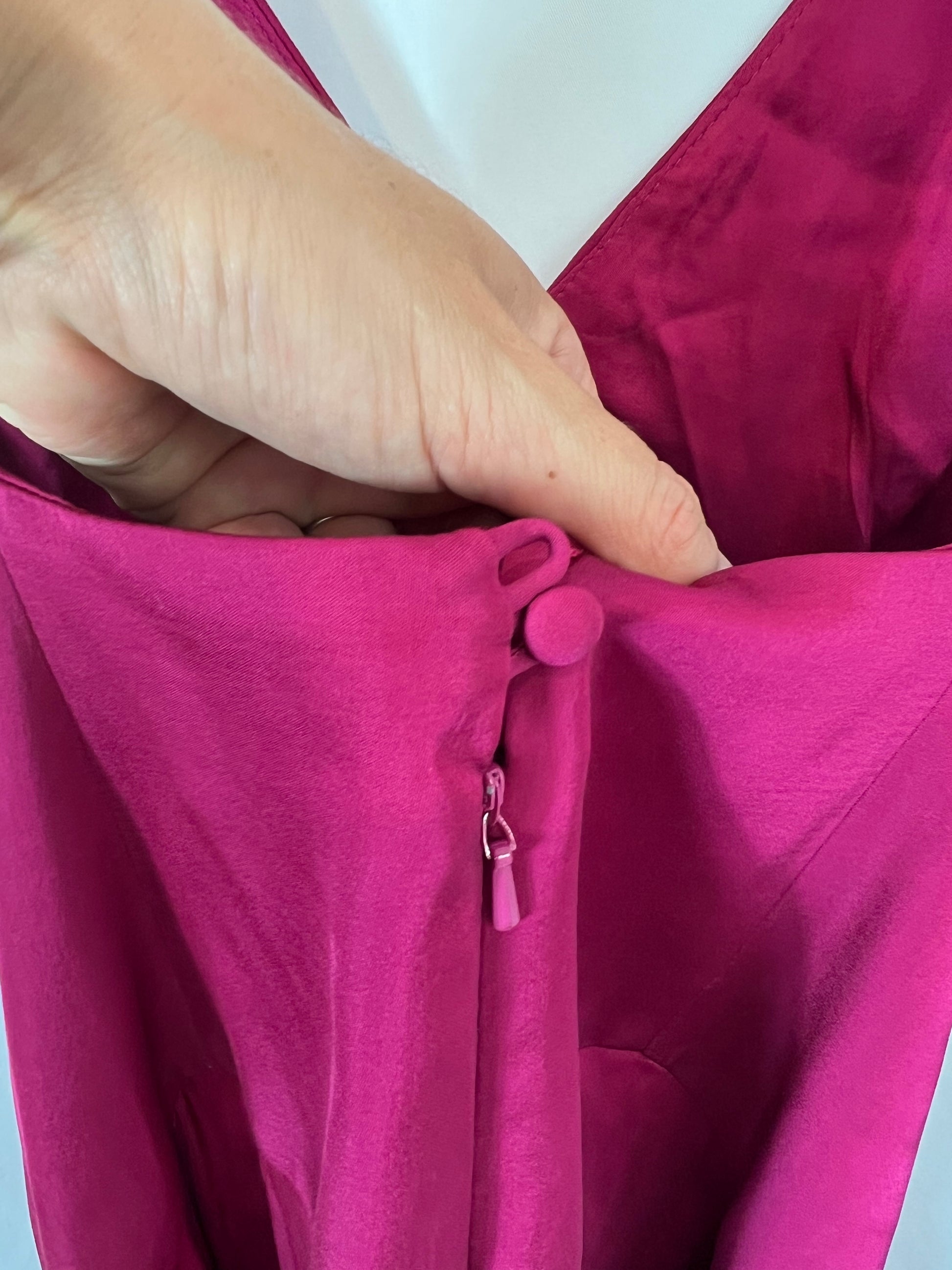 Vestido midi buganvilla aperturas. Tara: le falta un botón y tiene un mancha en el escote (foto). Cintura alta 34cm, largo 115cm