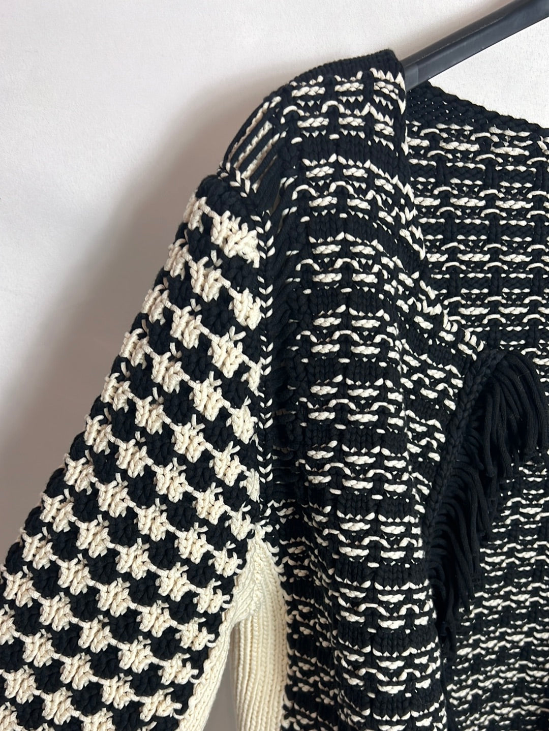Chaqueta punto bicolor. Hombros 42cm, largo 51 cm