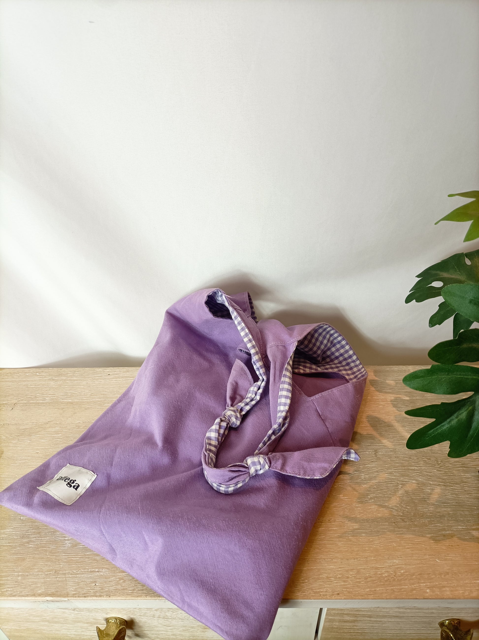 bolso reversible morado y cuadros vichí