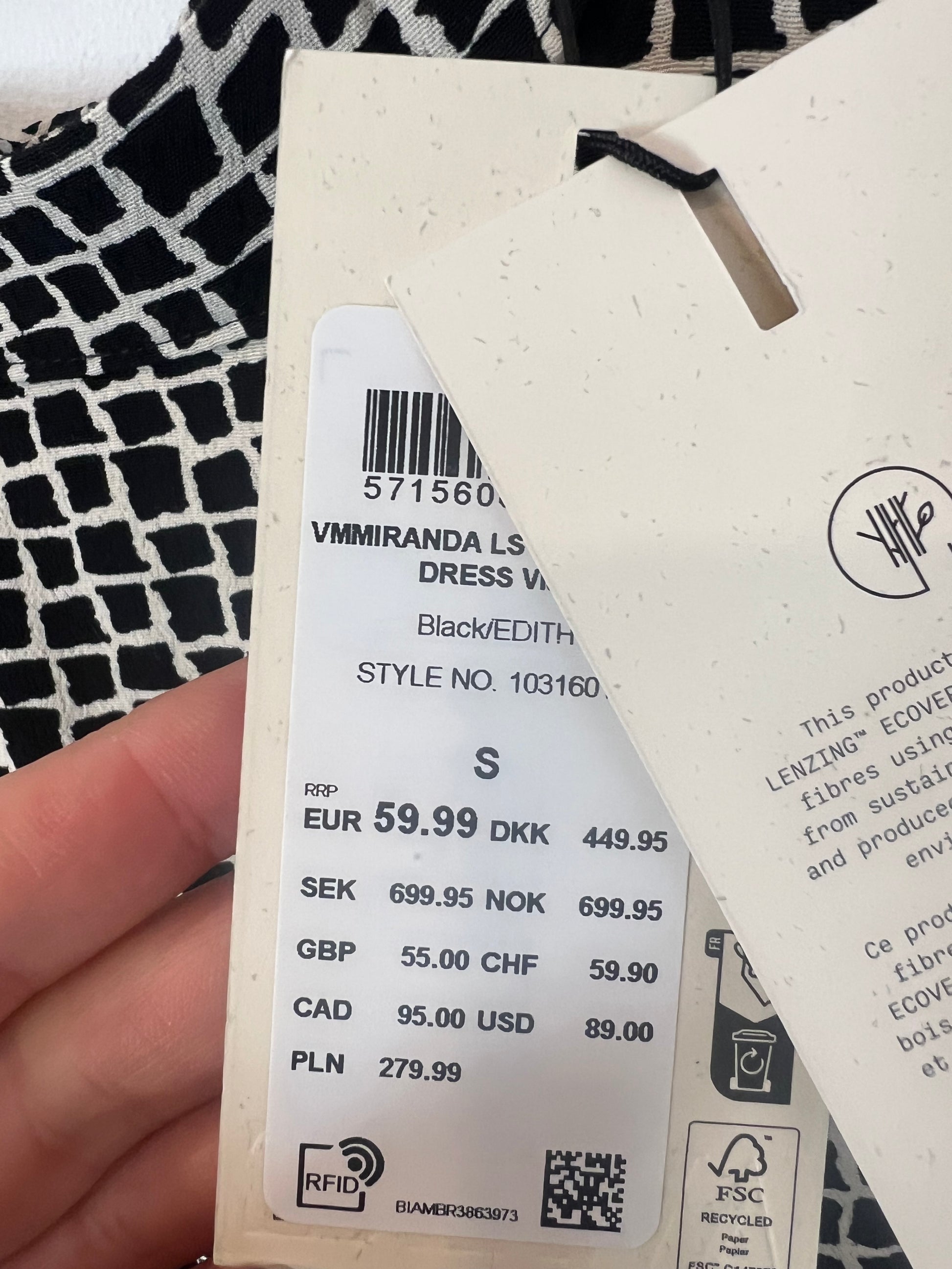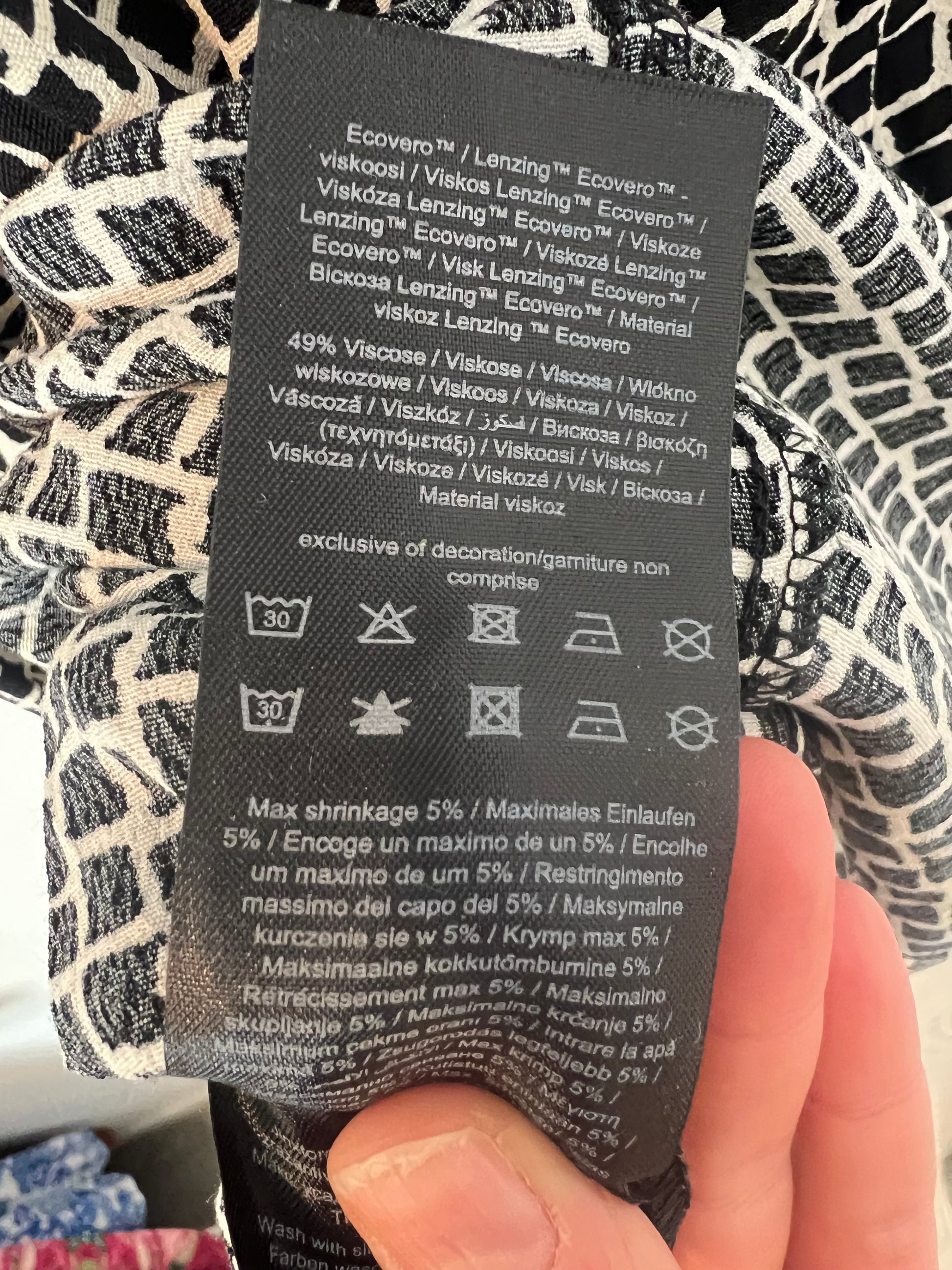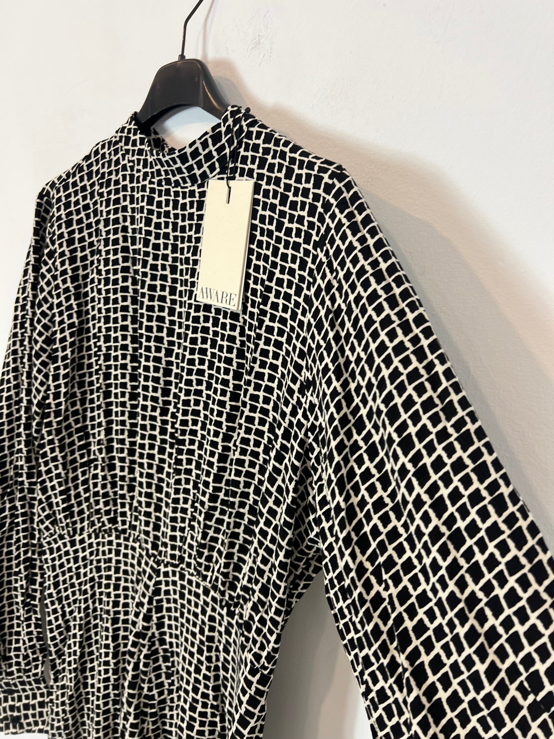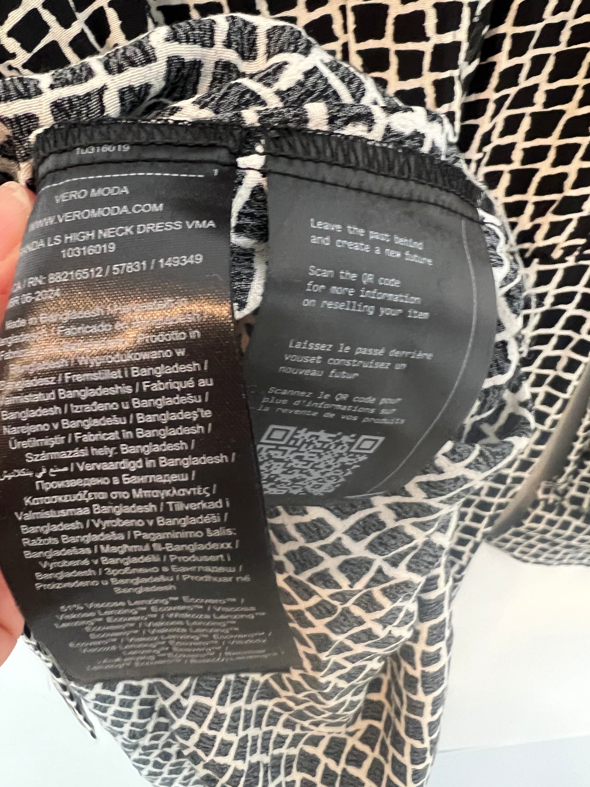 NUEVO CON ETIQUETA. Vestido largo fluido negro y blanco efecto cuadros. Largo asimétrico por los laterales. De sisa a sisa 57 cm cintura 39!cm largo 119 cm