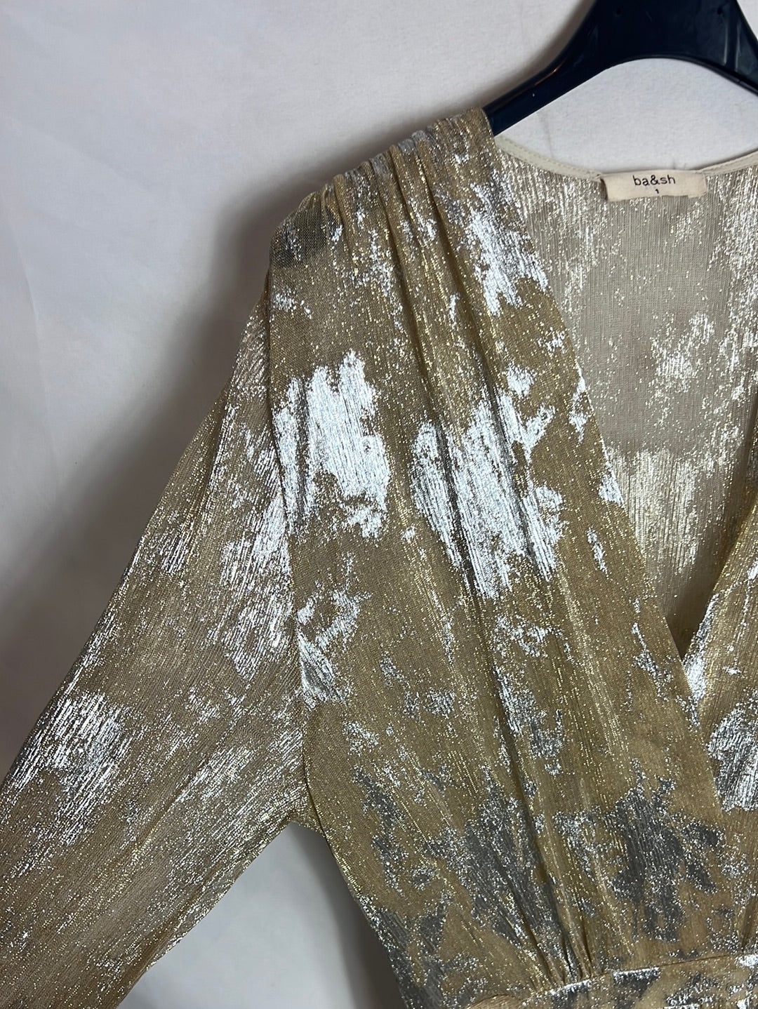 BA&SH. Vestido largo dorado y plateado. T1(S)