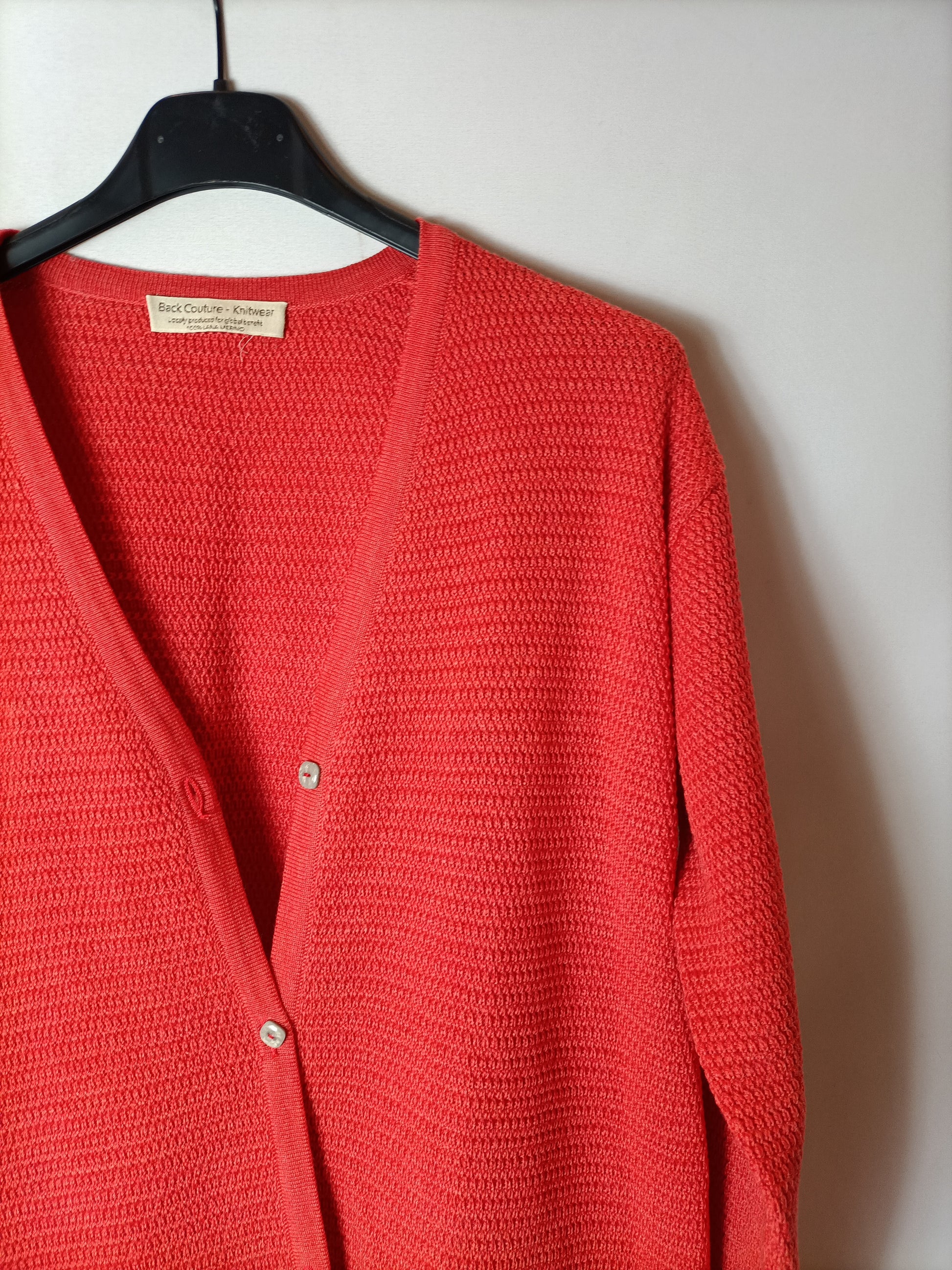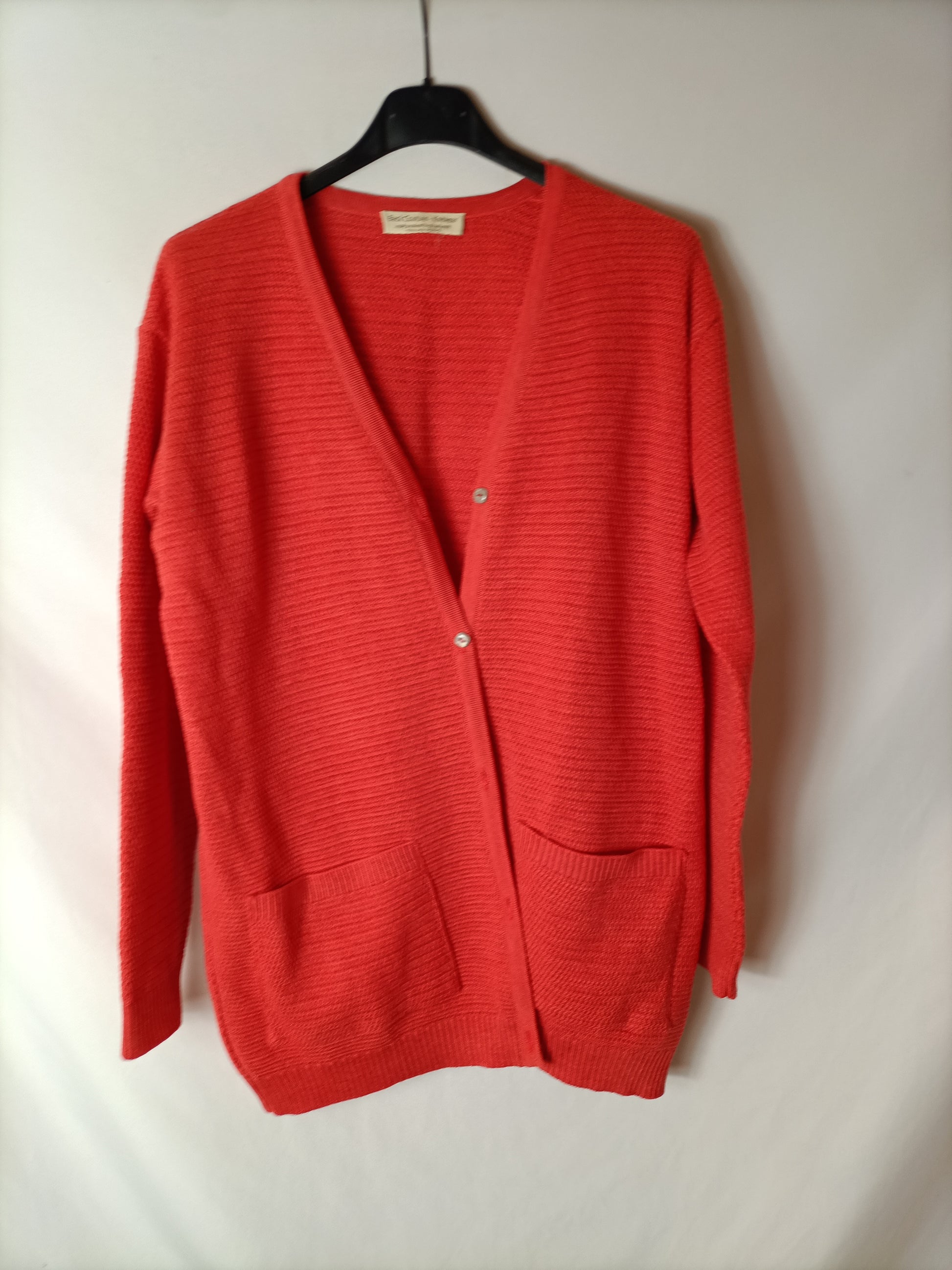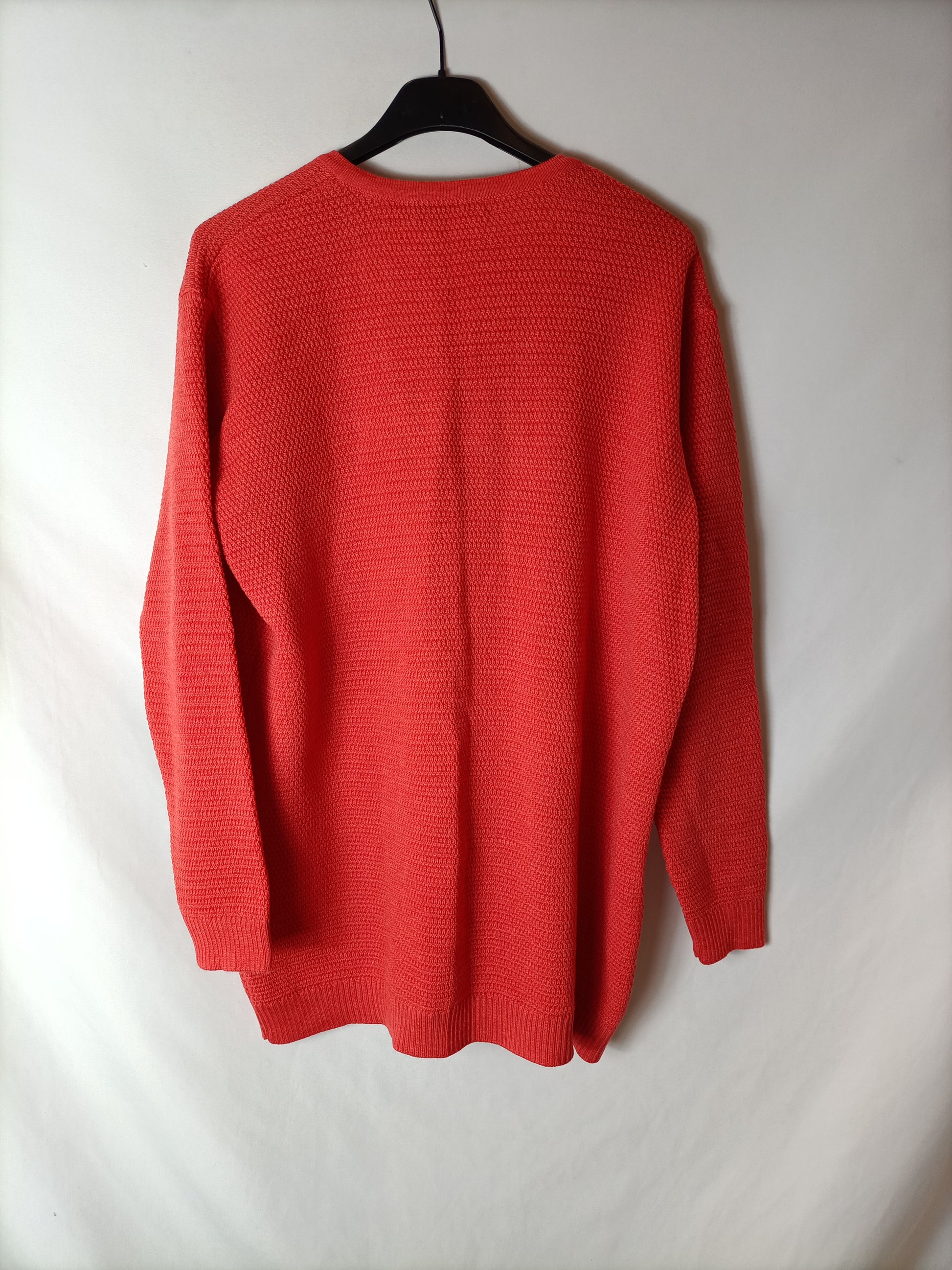 .Rebeca roja anaranjado. Botones nácar. 100% lana merino.