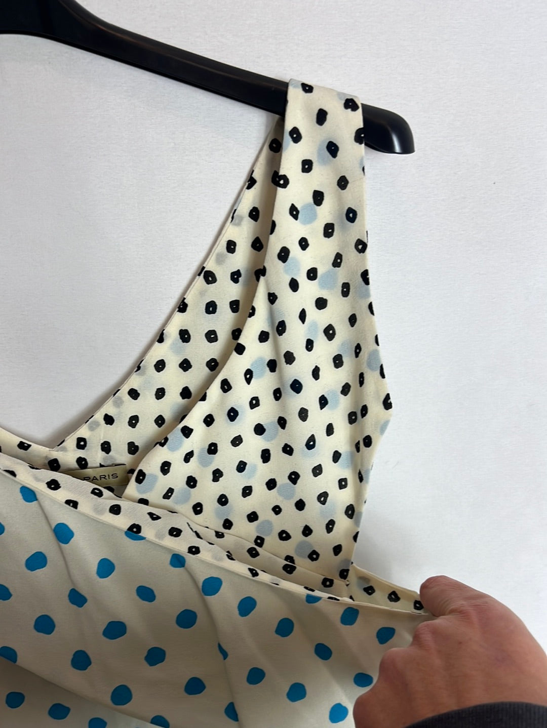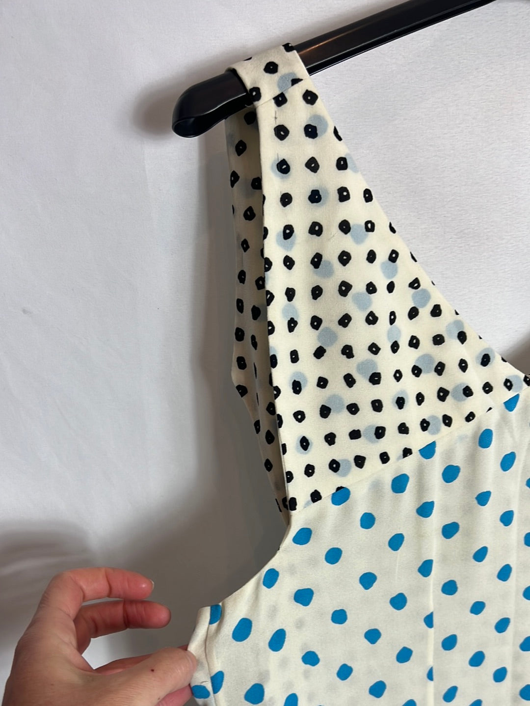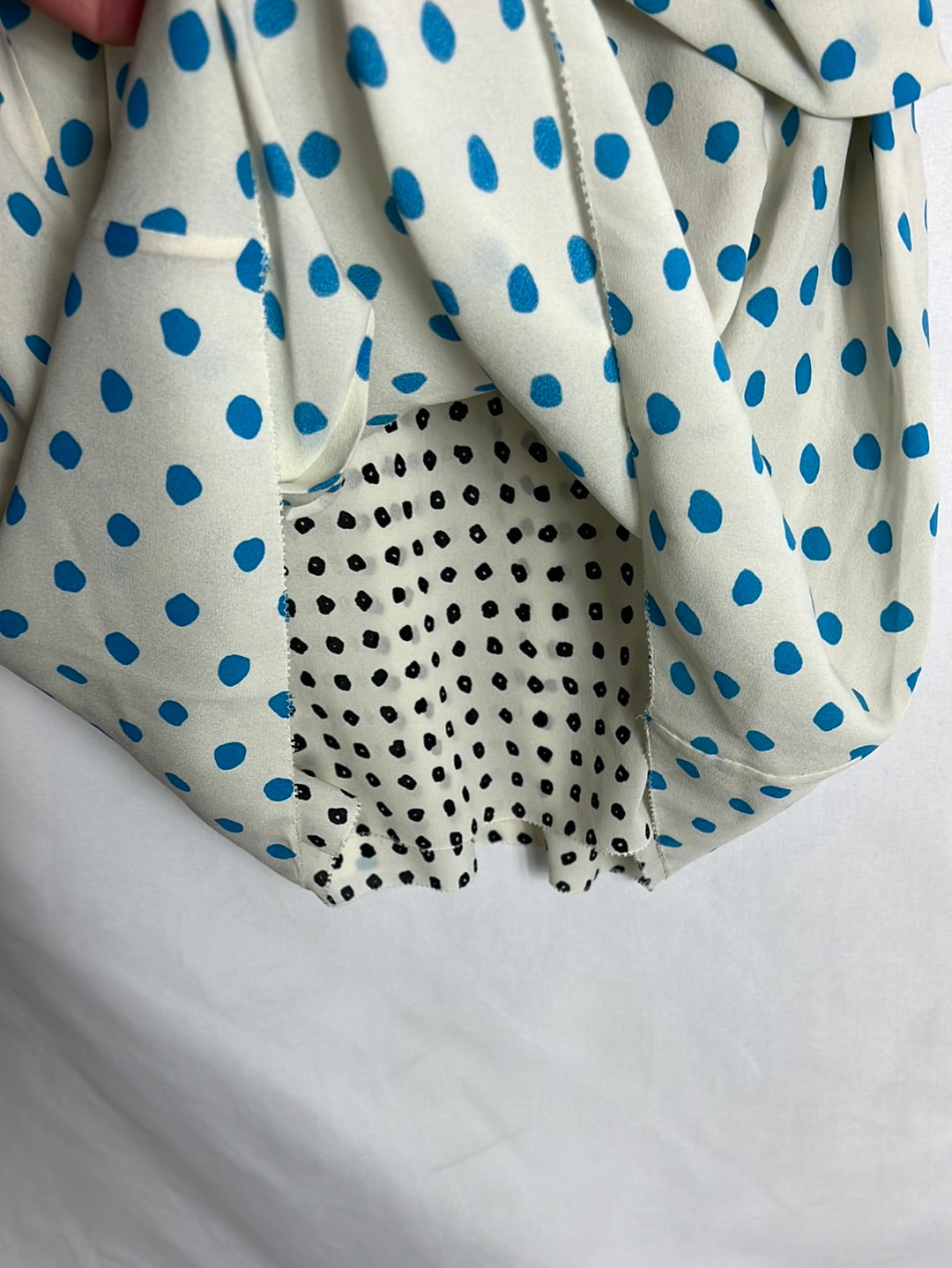 Top seda doble capa asimetrico . de sisa a sisa 45cm, largo 64cm