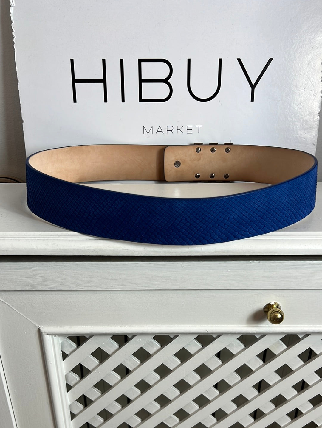 NUEVO SIN USO. Cinturón piel azul textura. T 95 Largo total 106cm. Tiene un pequeño rayón en la hebilla(foto)