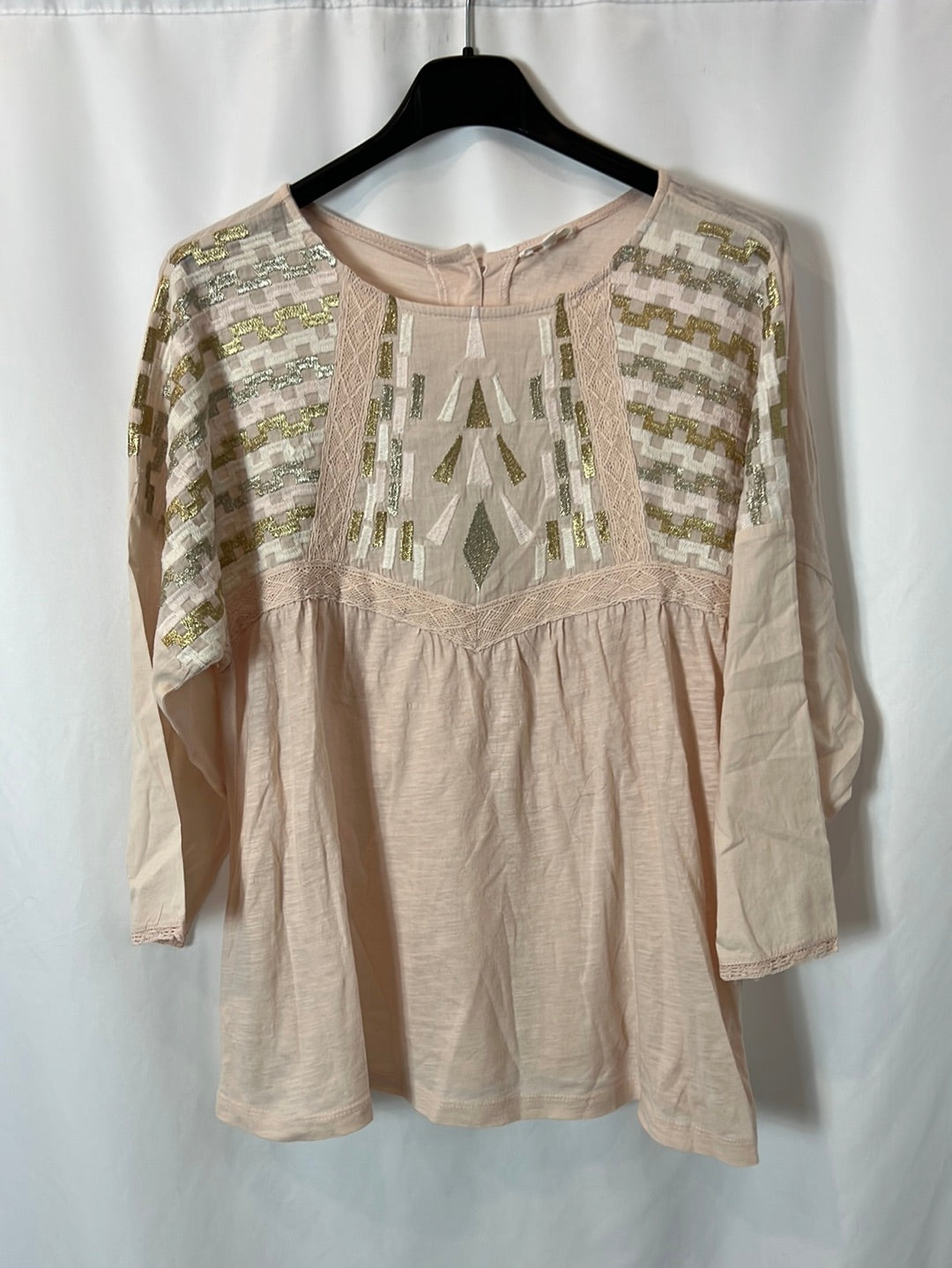 BASS 10 . Top rosa claro bordado. T 14 años (XS)