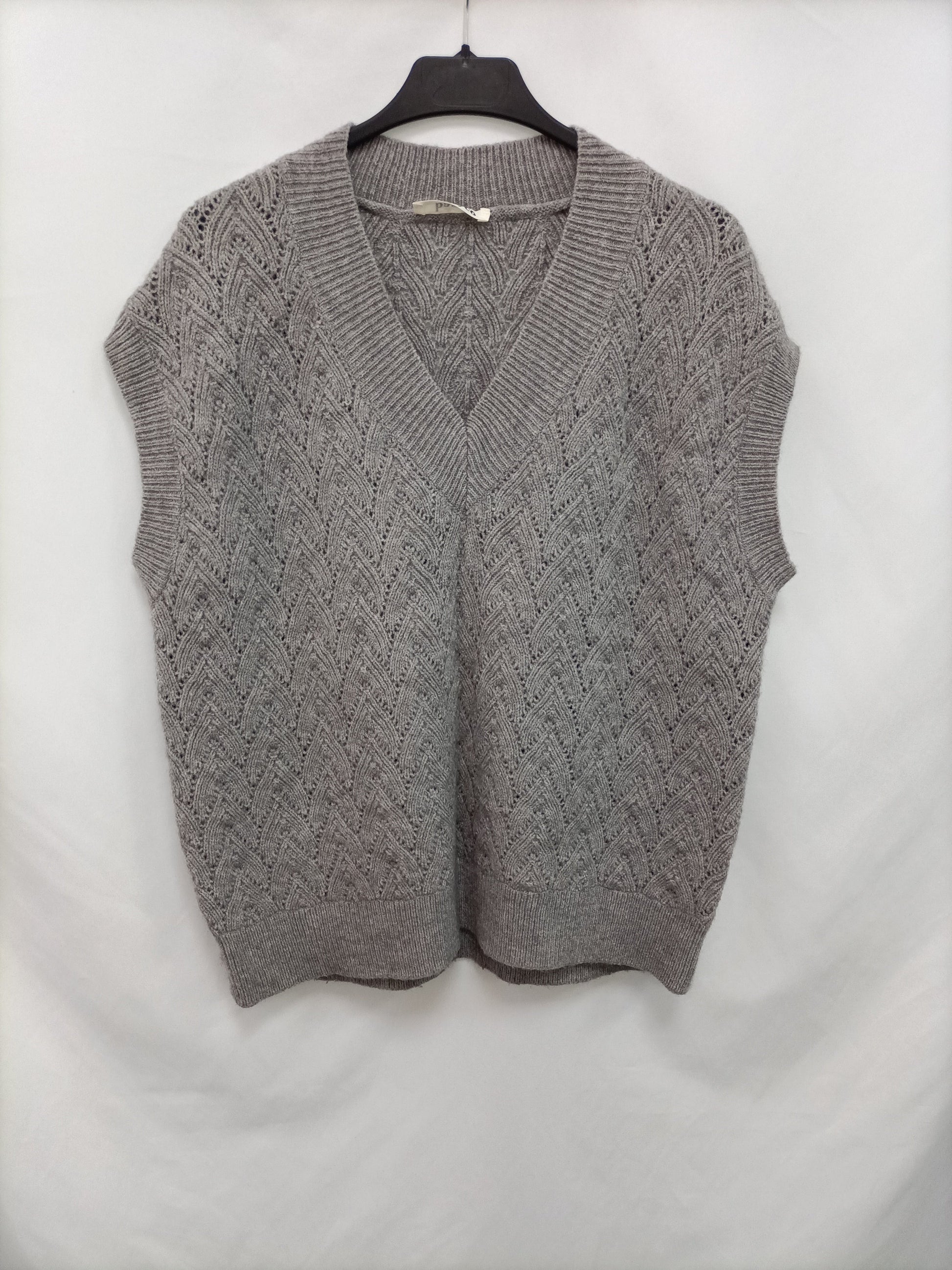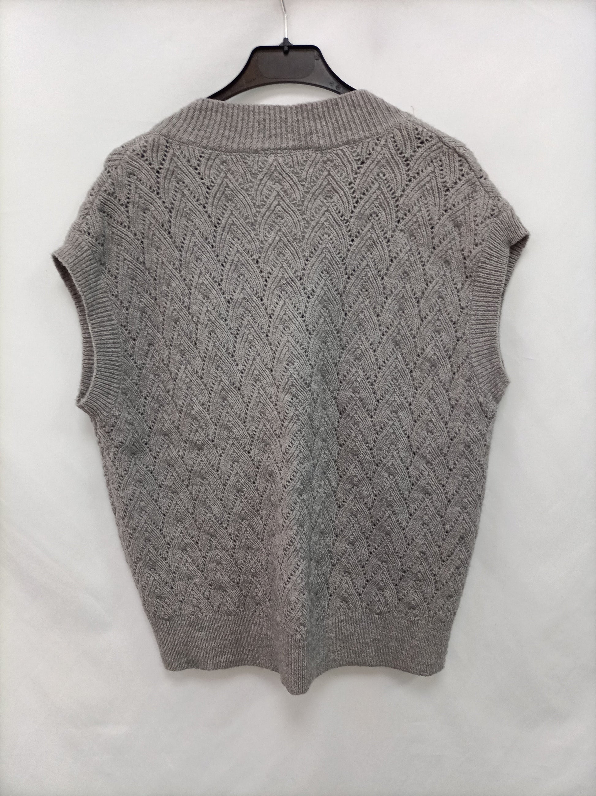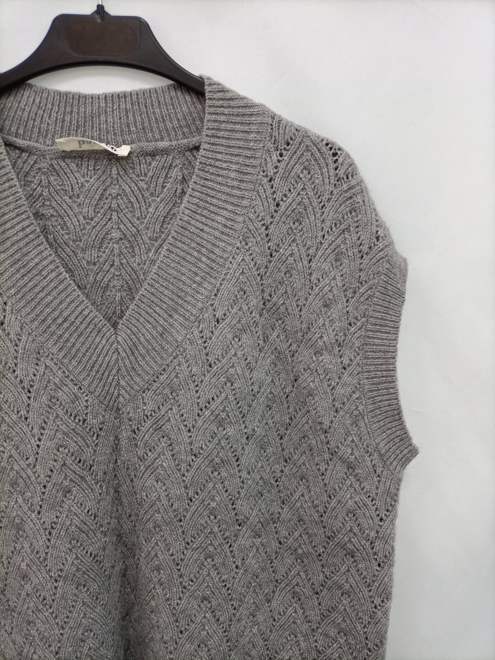 Chaleco de punto gris oversized. largo 65 cm