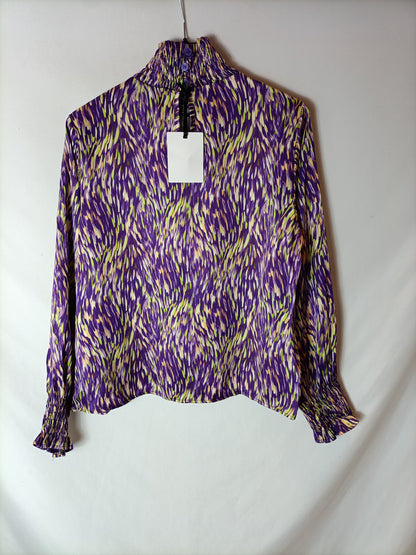 NUEVO CON ETIQUETA. Blusa morada estampada