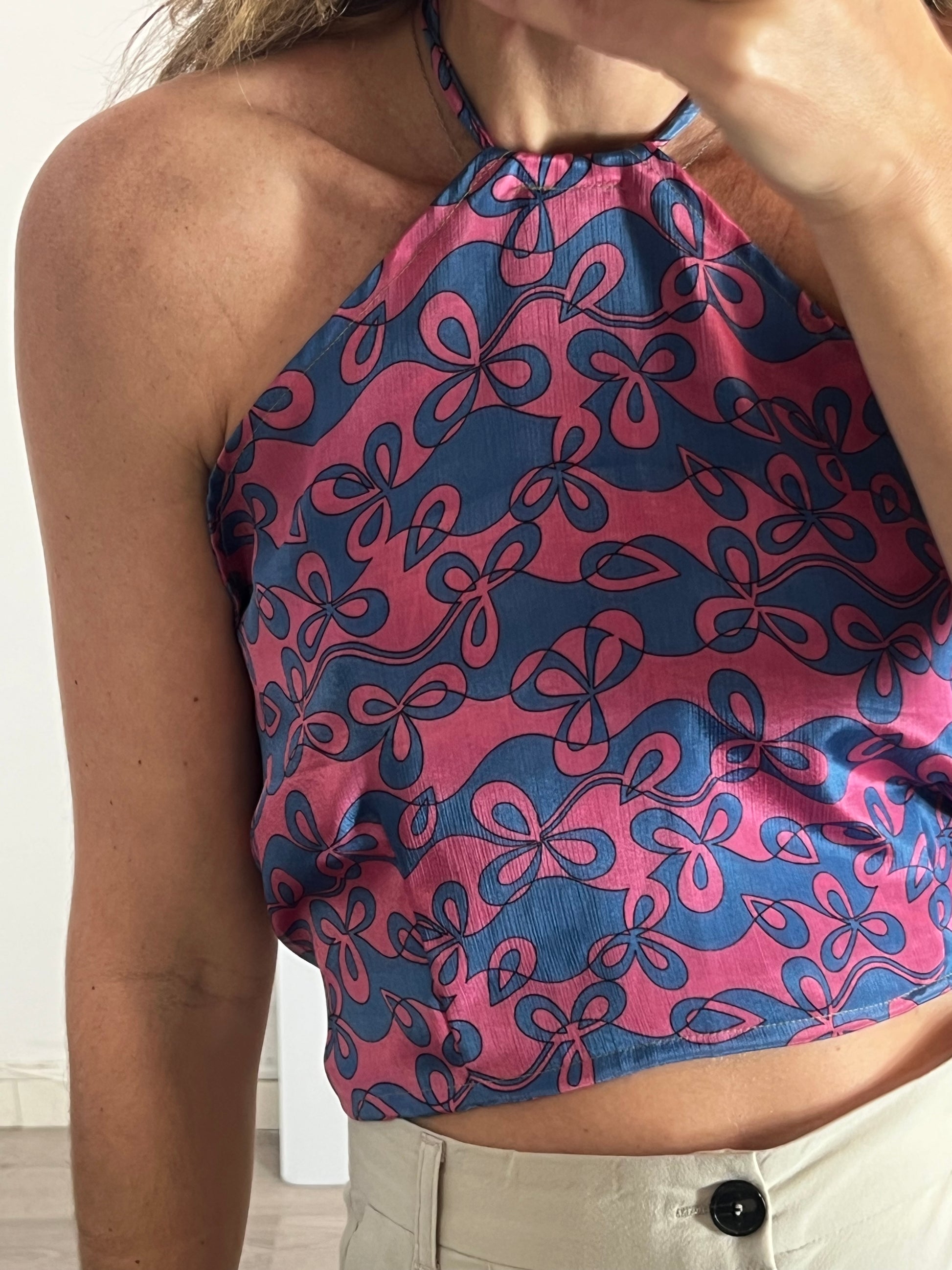 BASYCO. Top estampado anudado seda. Tu (s/m)