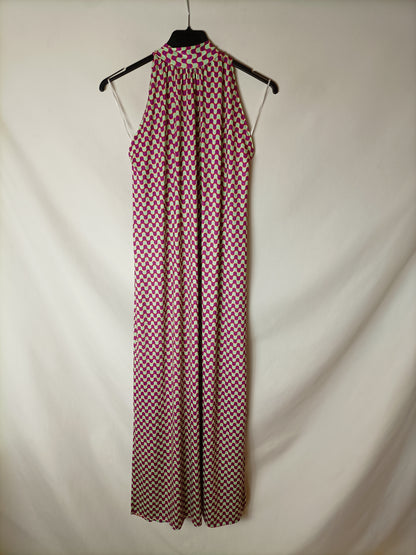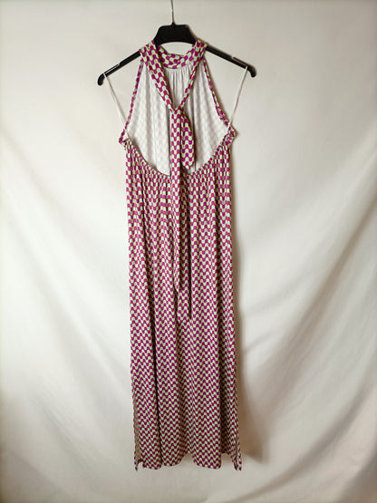 vestido de licra de rayas estilo retro elástico y atado al cuello