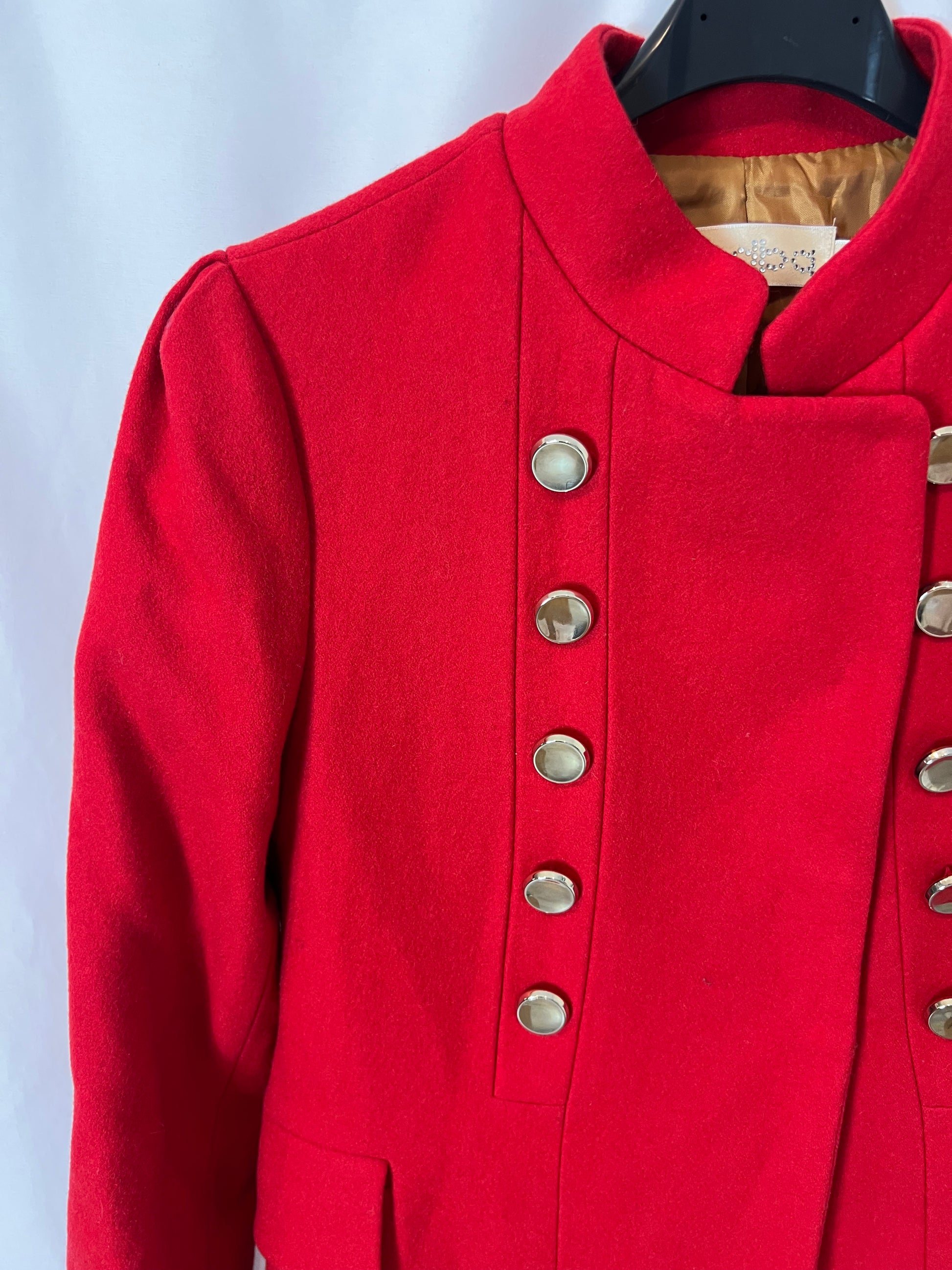 Abrigo/ chaqueta rojo doble botonadura. 70% lana. HombRos 37cm, de sisa a sisa 44 cm, largo 70 cm