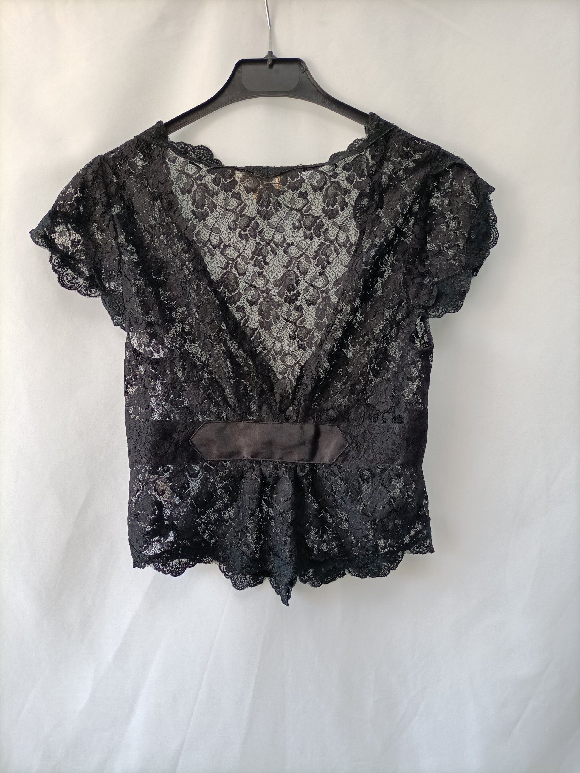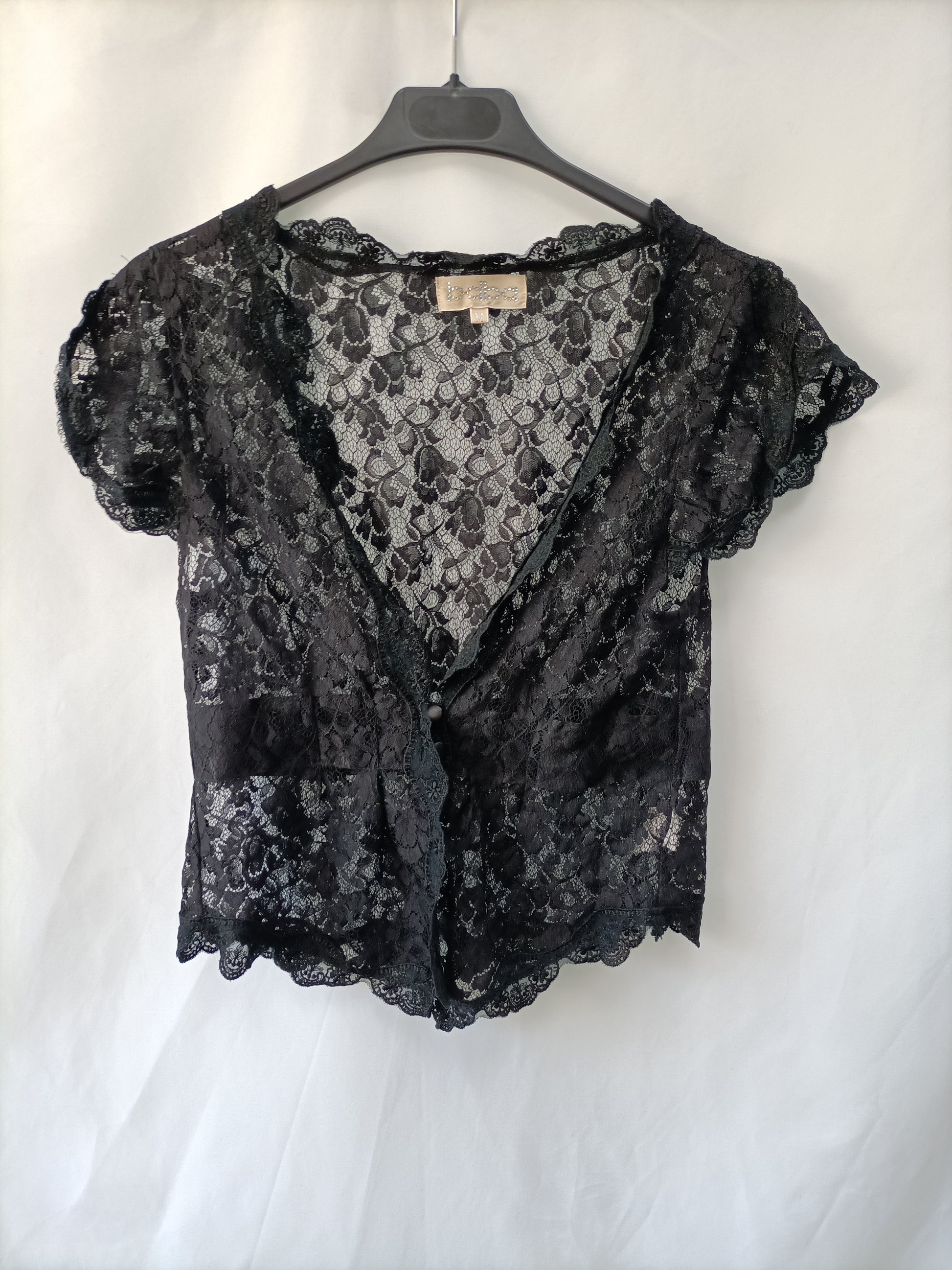 BDBA. Rebeca encaje negra manga corta. Elástica. Largo 46 cm
