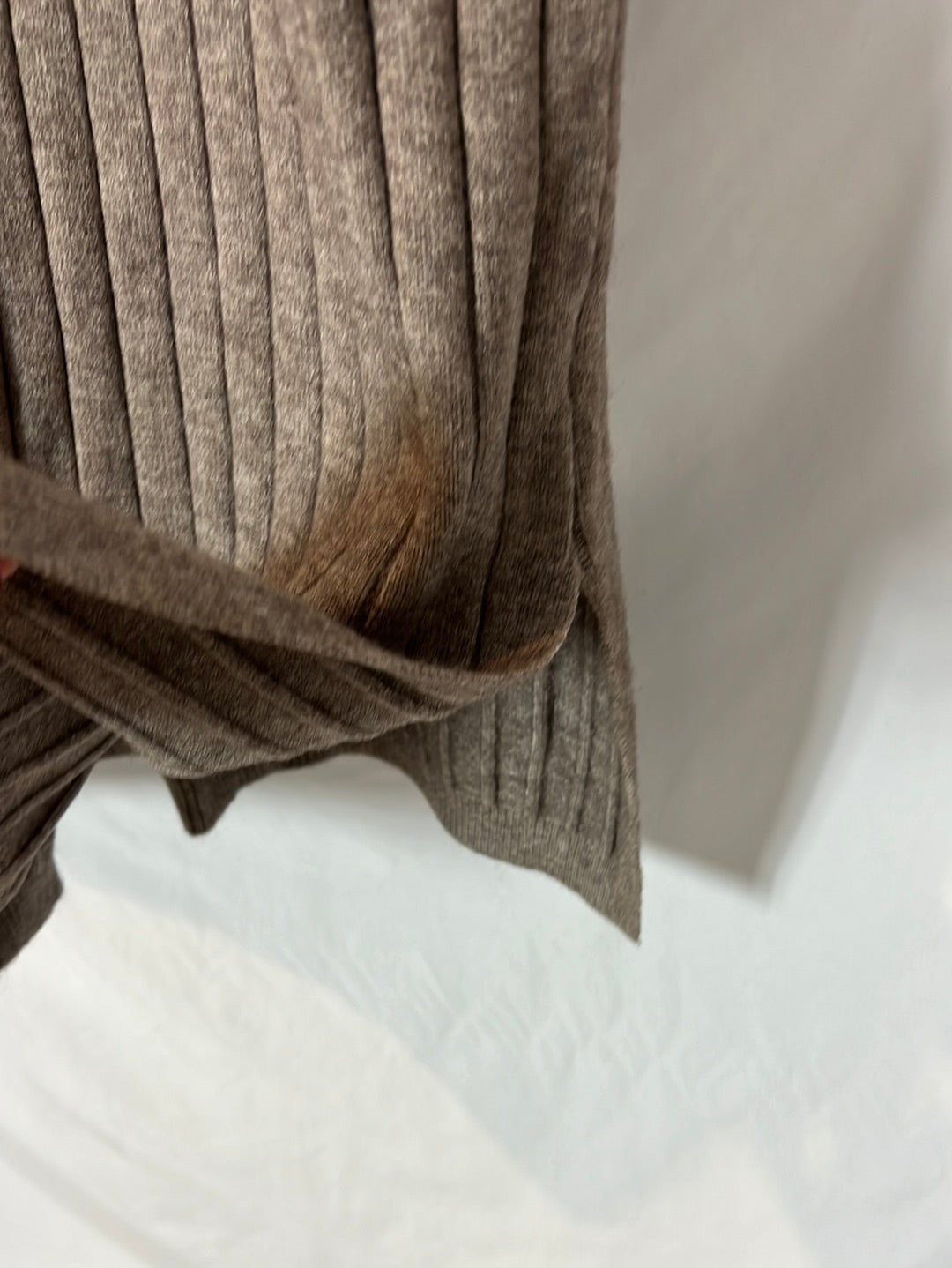 NUEVO CON ETIQUETA. Vestido canalé color topo. Elástico. Aberturas laterales. De sisa a sisa 49cm, largo 89cm