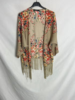 Kimono beige flores y flecos